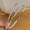 马卡龙色转运珠手绳女男适用于周家的黄金编织粉色蓝色皮绳手链