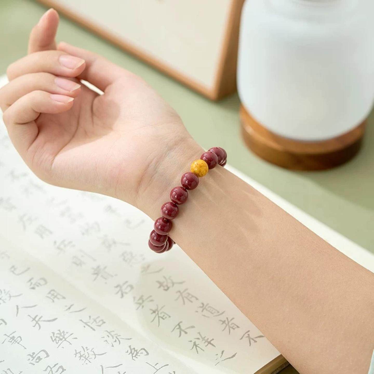 湘西雄黄晶体朱砂手串黄色手链女转运珠雄黄砂低含量手串正品上岸