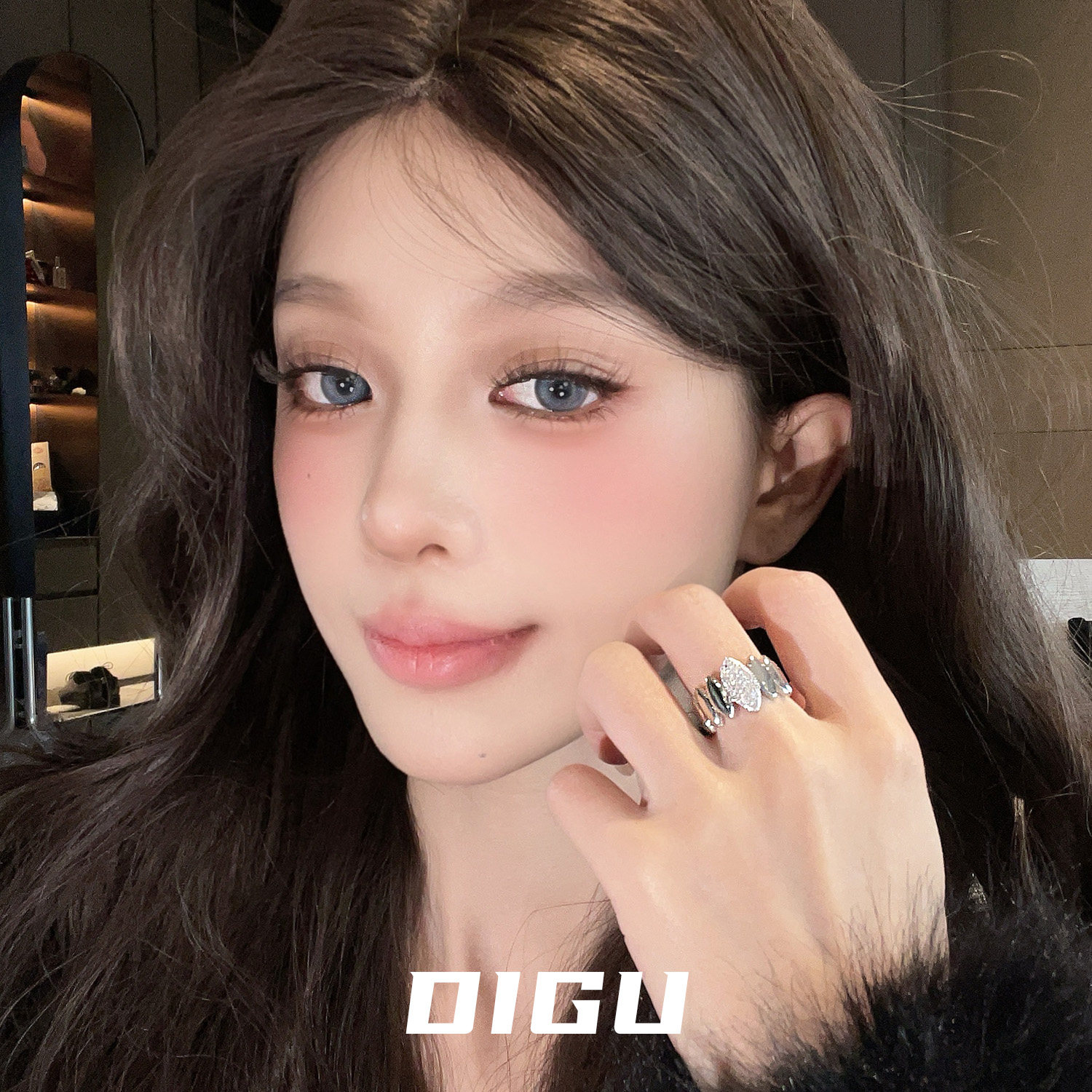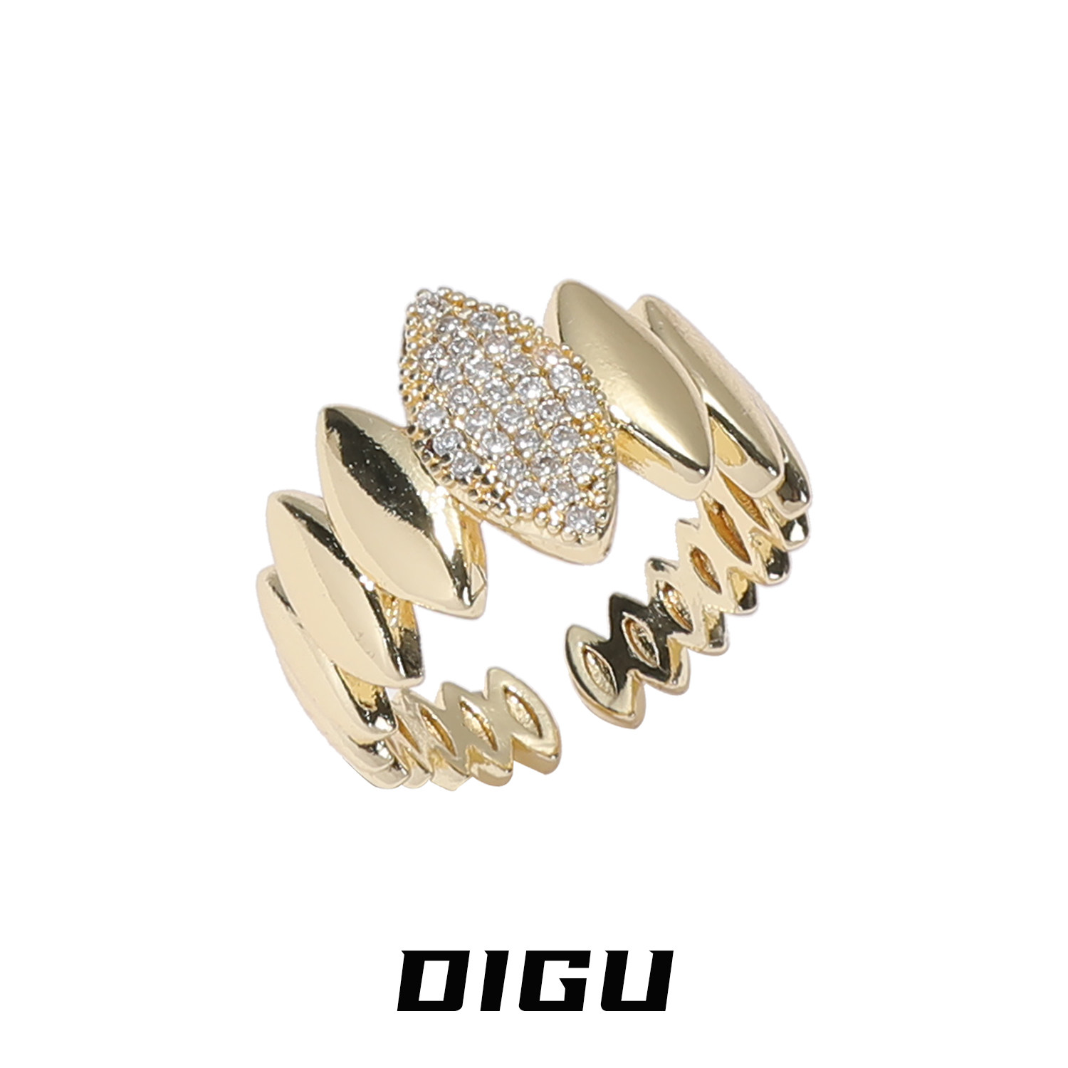 DIGU欧美复古金色夸张镶钻椭圆形戒指轻奢独特设计感开口指环手饰
