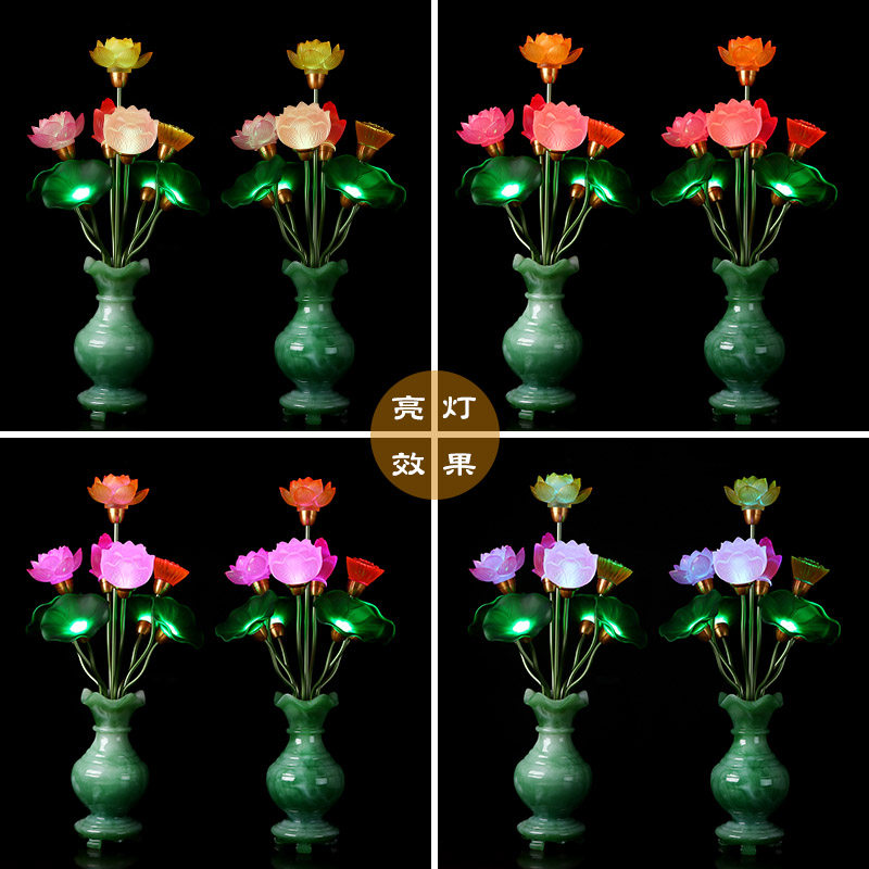 佛堂花瓶莲花灯供佛灯 家用琉璃佛供灯观音荷花灯 九品莲花灯插电
