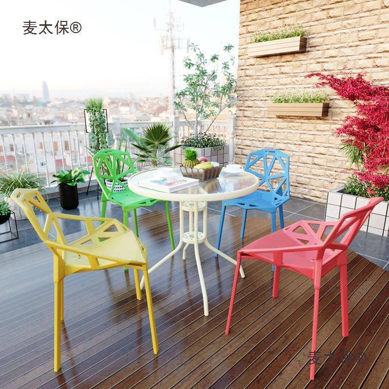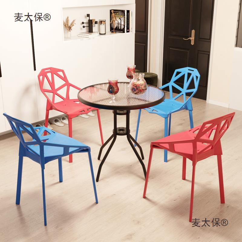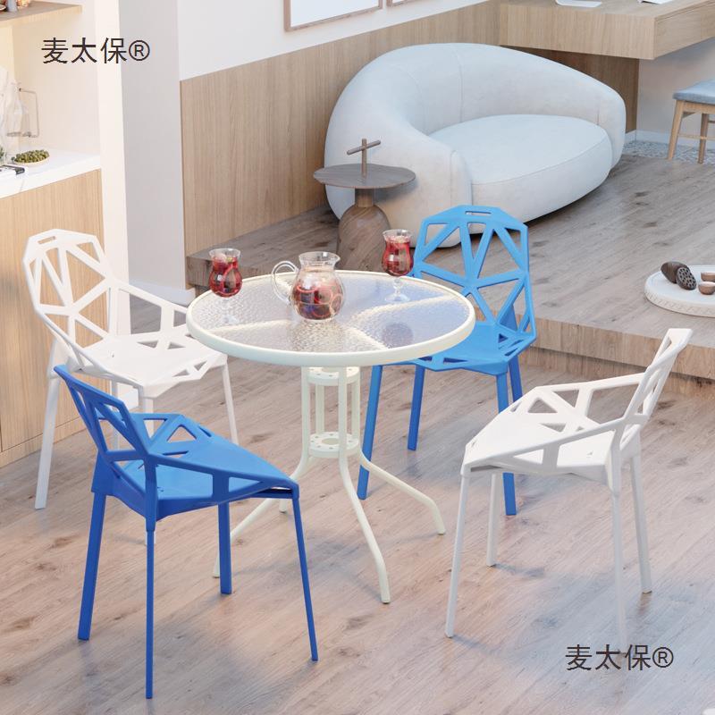 钢化玻璃圆桌洽谈桌椅组合户外小桌子现代简约铁艺餐桌休闲麦太保