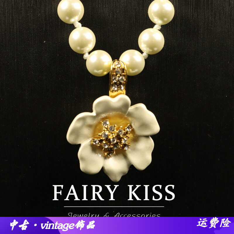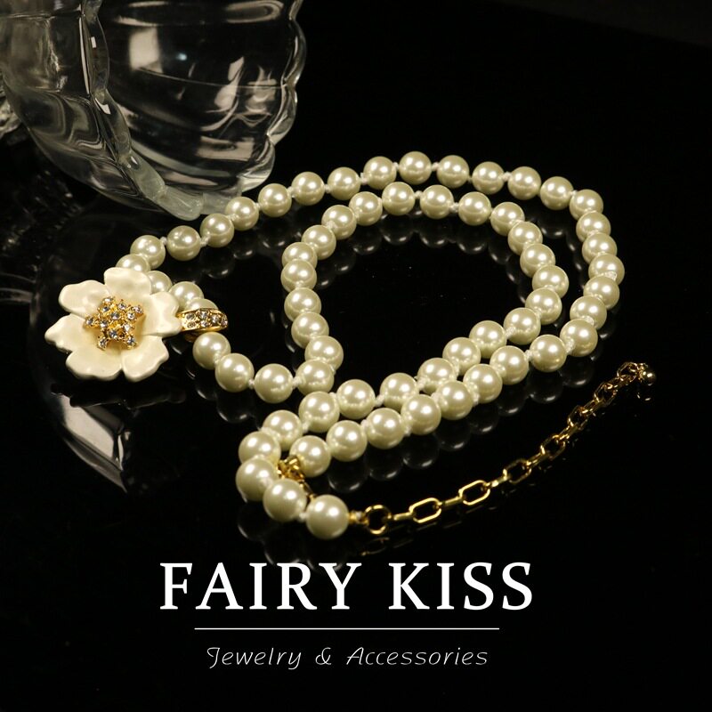 精致白色山茶花项链吊坠手工琉璃珠长款毛衣链女中古饰品
