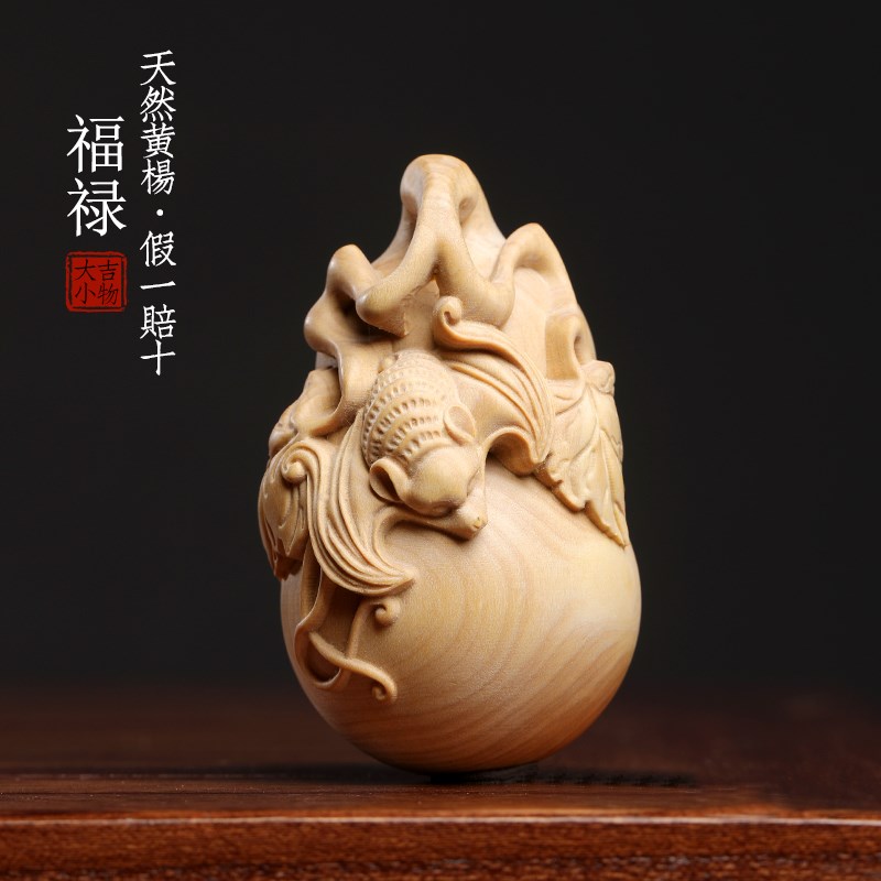 天然小叶黄杨木雕葫芦蝙蝠福禄创意文玩手把件挂件桌面工艺品摆件