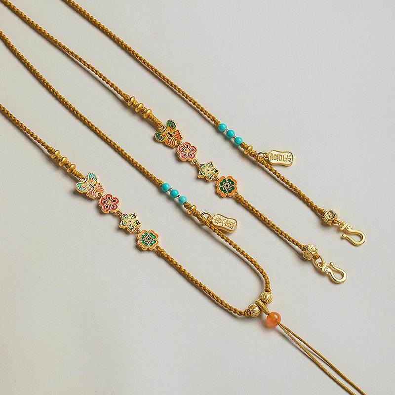 手工编织双耳如意锁包挂绳编绳项链黄金佛头吊坠绳毛衣链女款高档