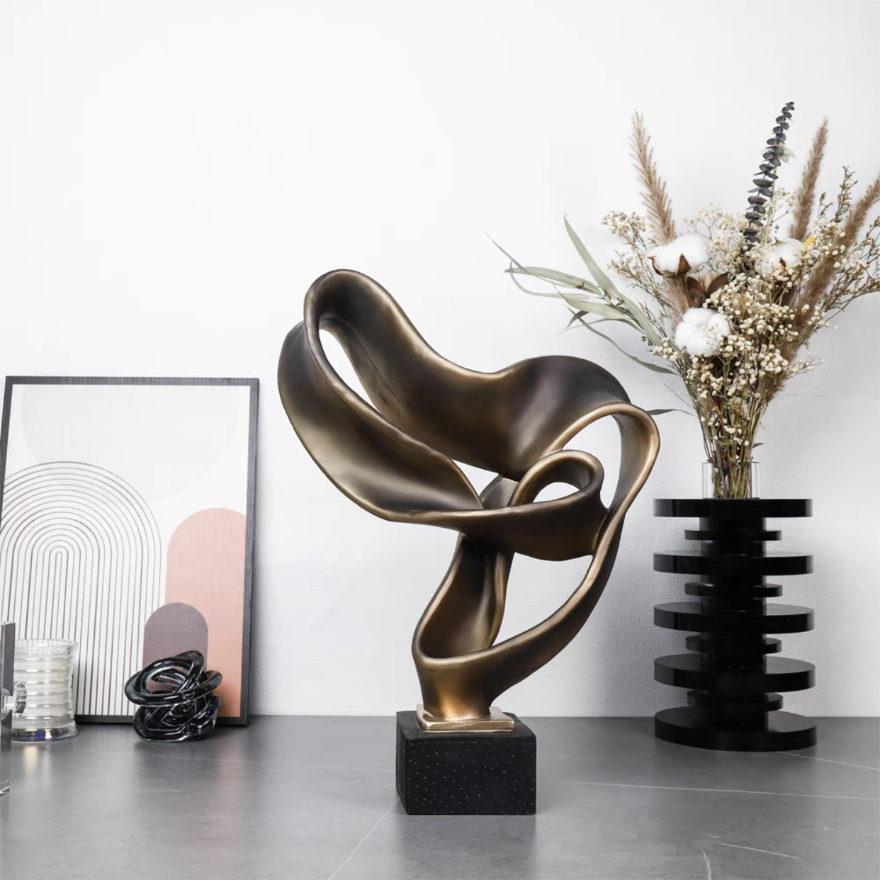 北欧抽象树脂飘带摆件样板房售楼部卧室书房客厅餐厅电视柜饰品