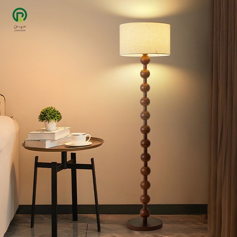 中式台灯落地灯胡桃木纹色侘y寂风客厅美式复古卧室高级感氛围灯