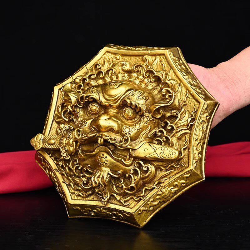 纯铜睚眦狮咬剑牌八角狮吞口剑牌铜狮子头挂牌对电梯口办公室礼品