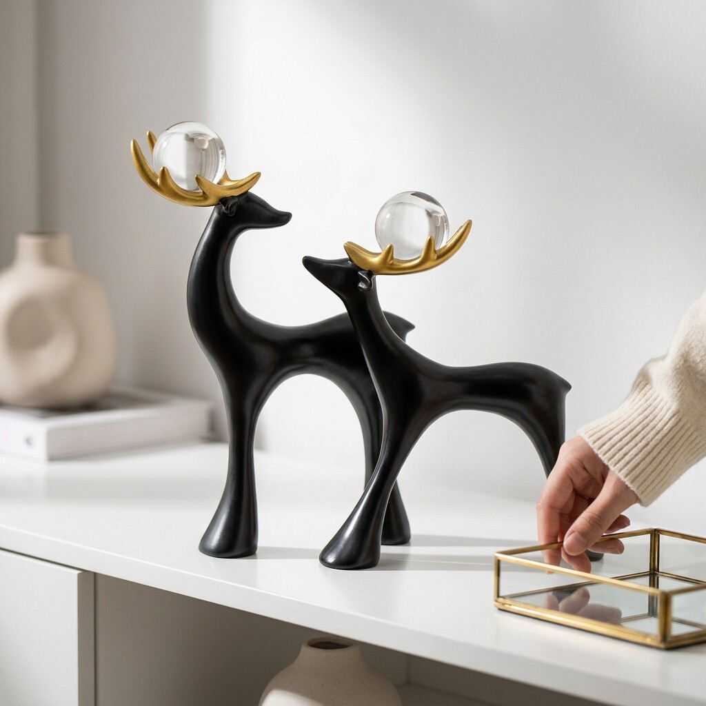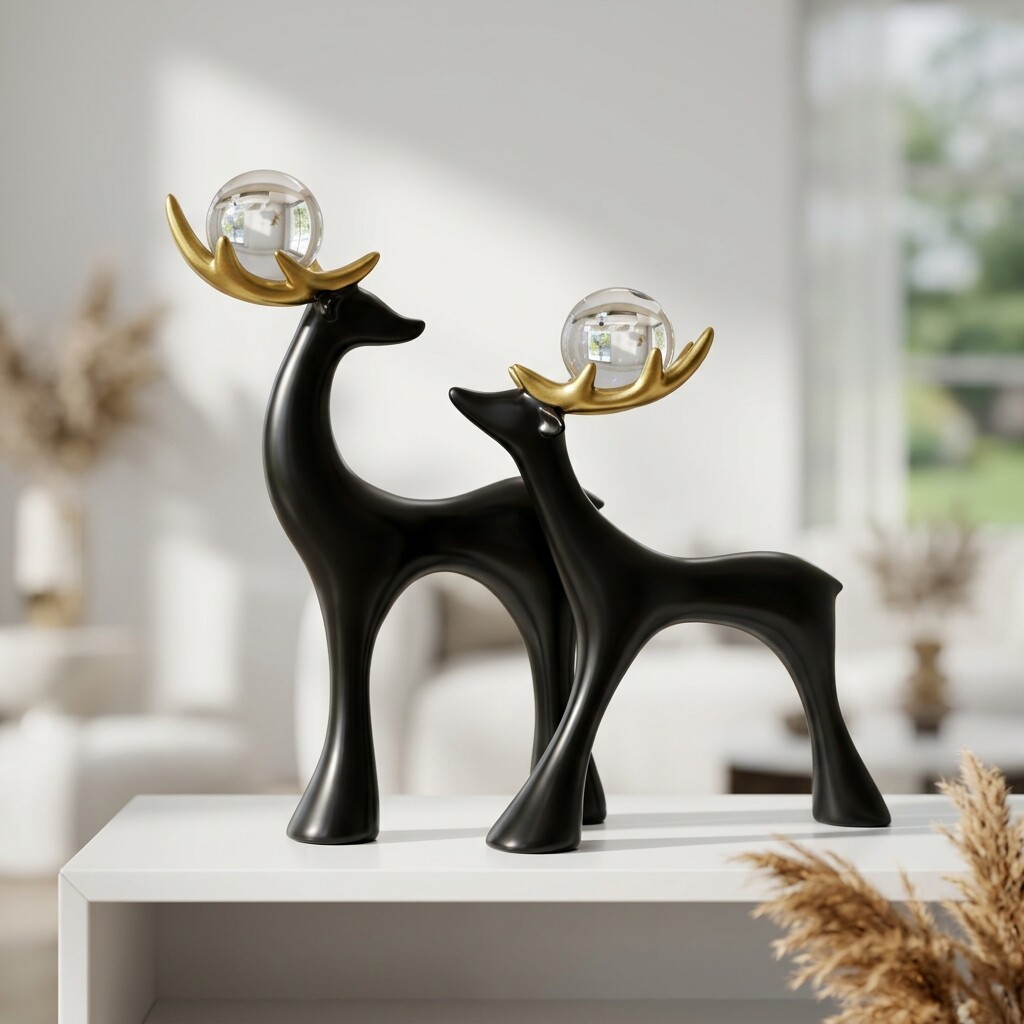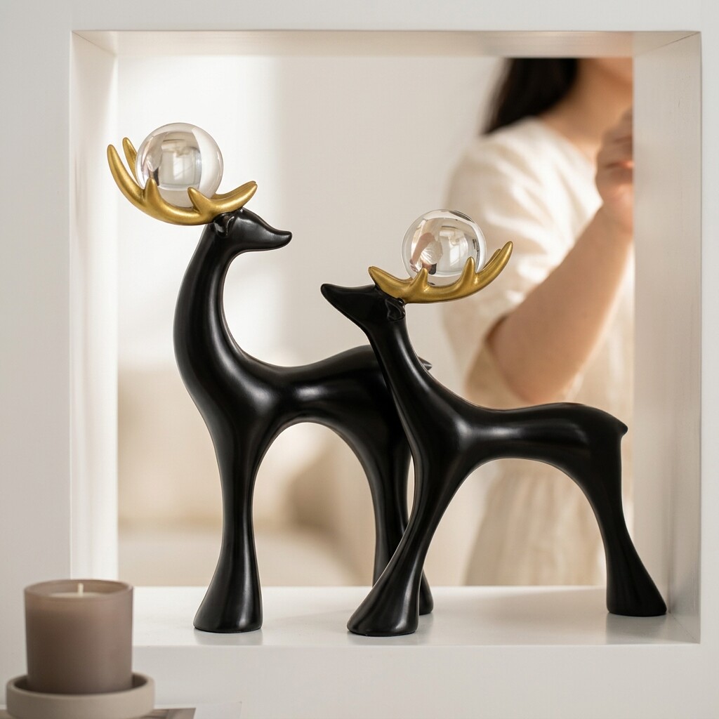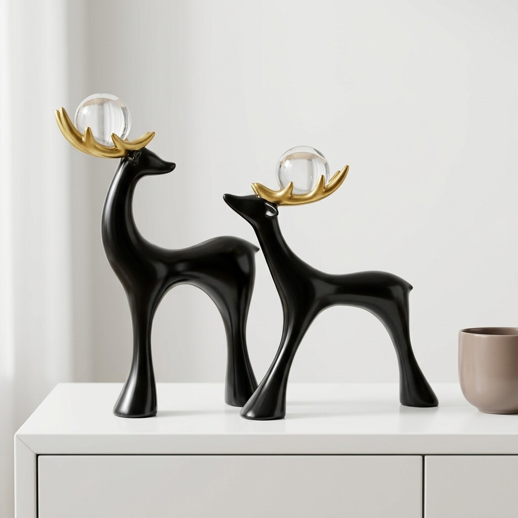 现代简约黑色鹿摆件家居装饰品树脂工艺品客厅书房装饰摆件