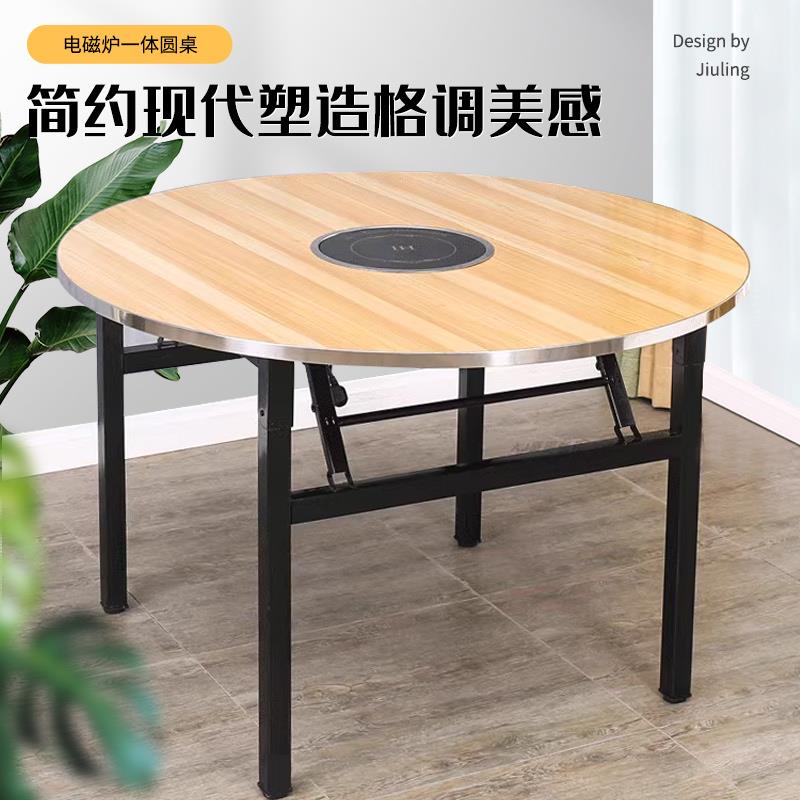 7K简易经济型火锅桌电磁炉一体圆桌商用家用饭店餐馆吃饭大圆餐桌