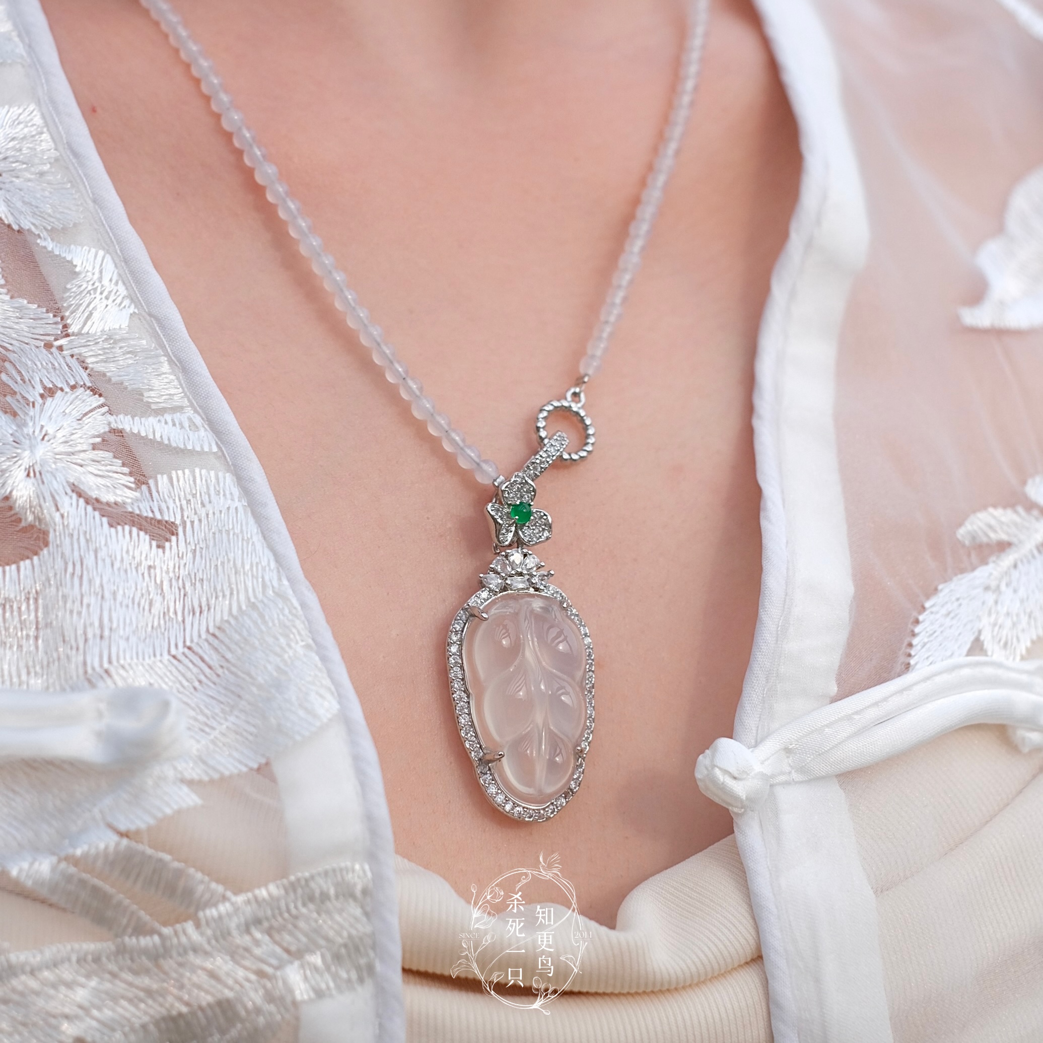 《玉生烟》新中式复古轻奢高冰玉髓葫芦树叶吊坠绿玛瑙项链锁骨链