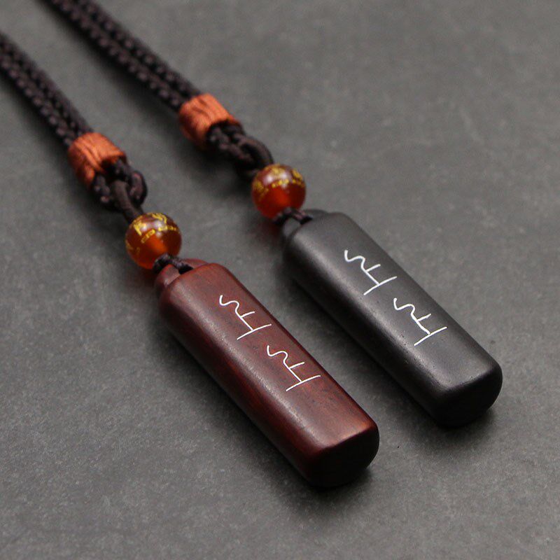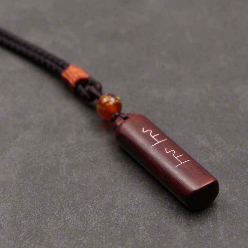 上上签吊坠檀木项链银丝镶嵌女男礼物情侣毛衣链2024创意礼品挂件