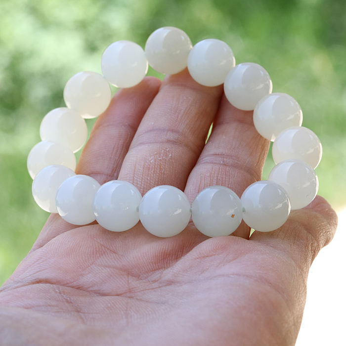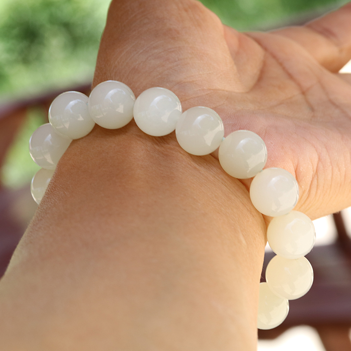 【小胡子玉器】和田玉 于田料 白玉 12mm圆珠 手链