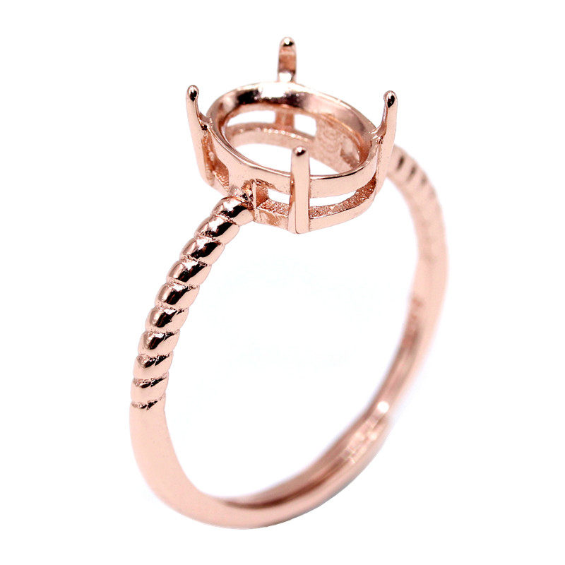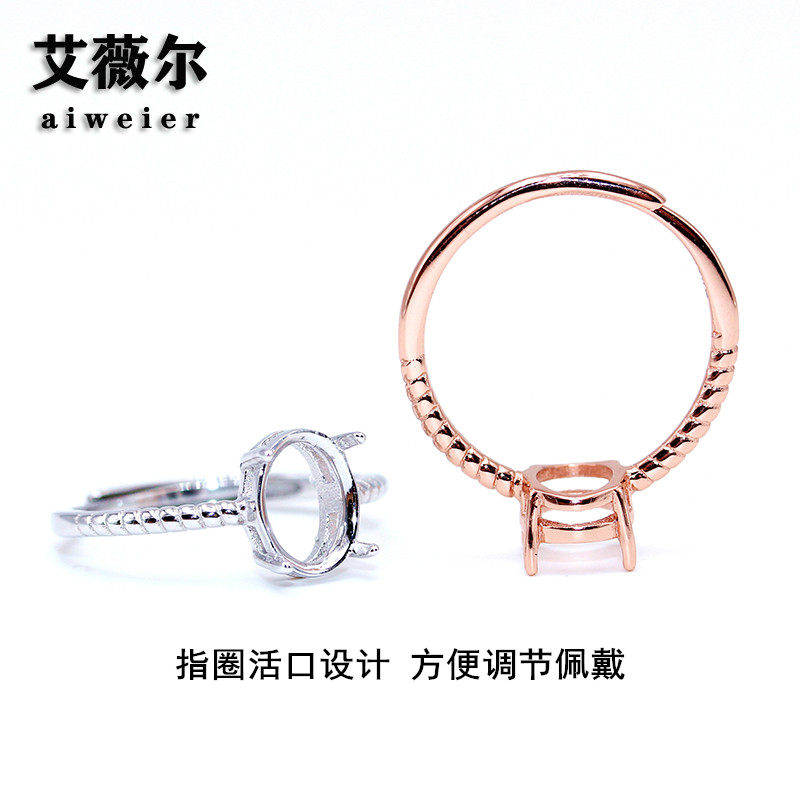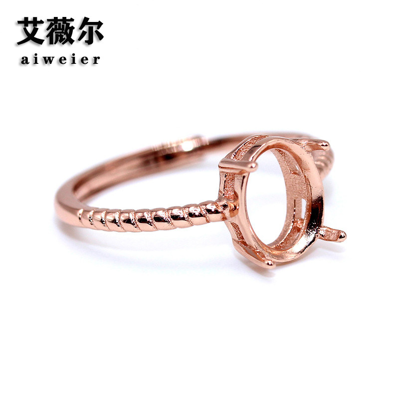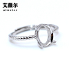 925银戒指空托椭圆形戒托麻花戒代加工镶嵌戒托5*7-10*12mm活口