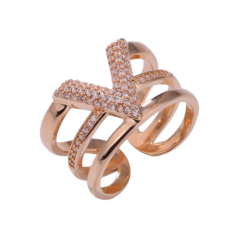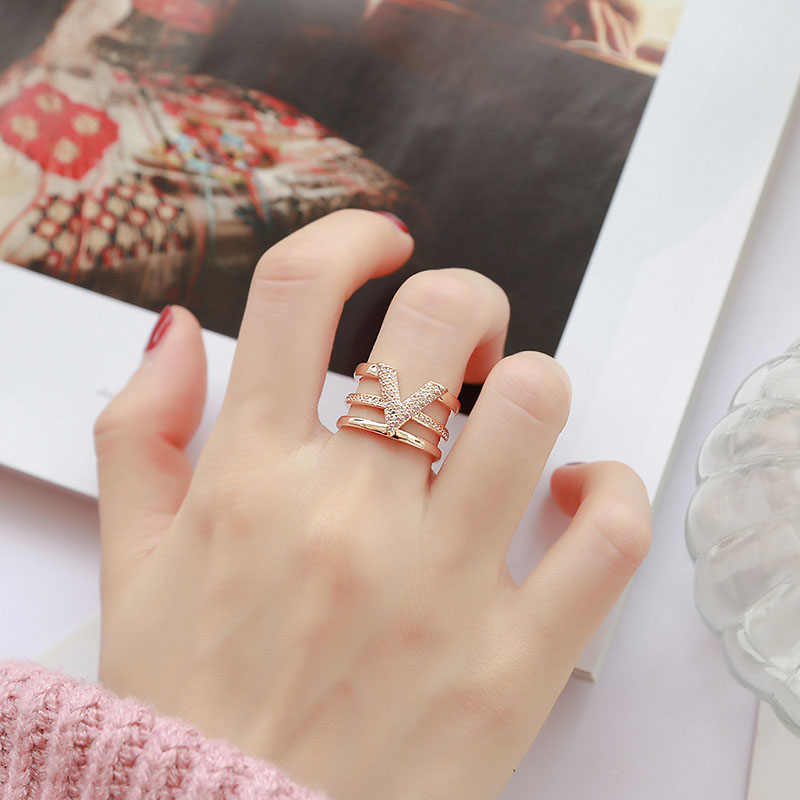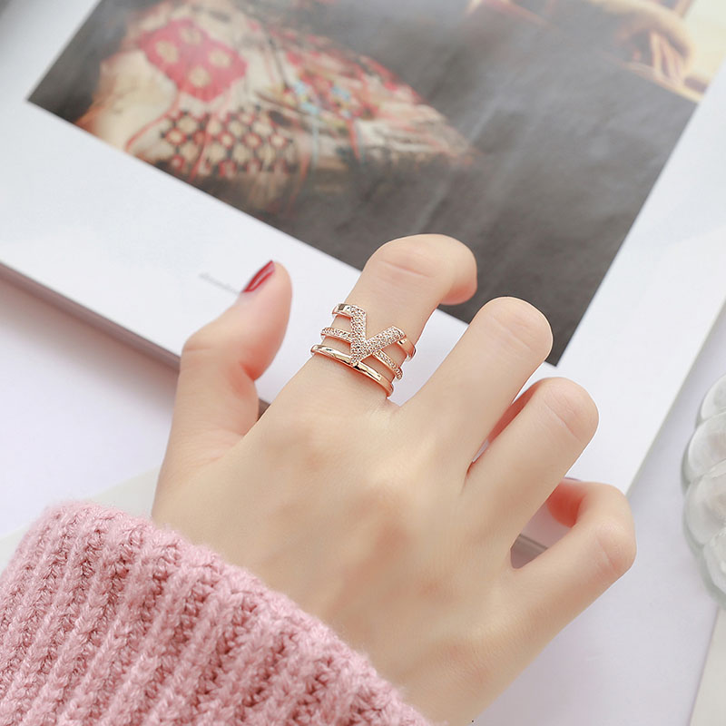 18k玫瑰金食指戒指女时尚个性不掉色轻奢小众指环精致钛钢饰品潮