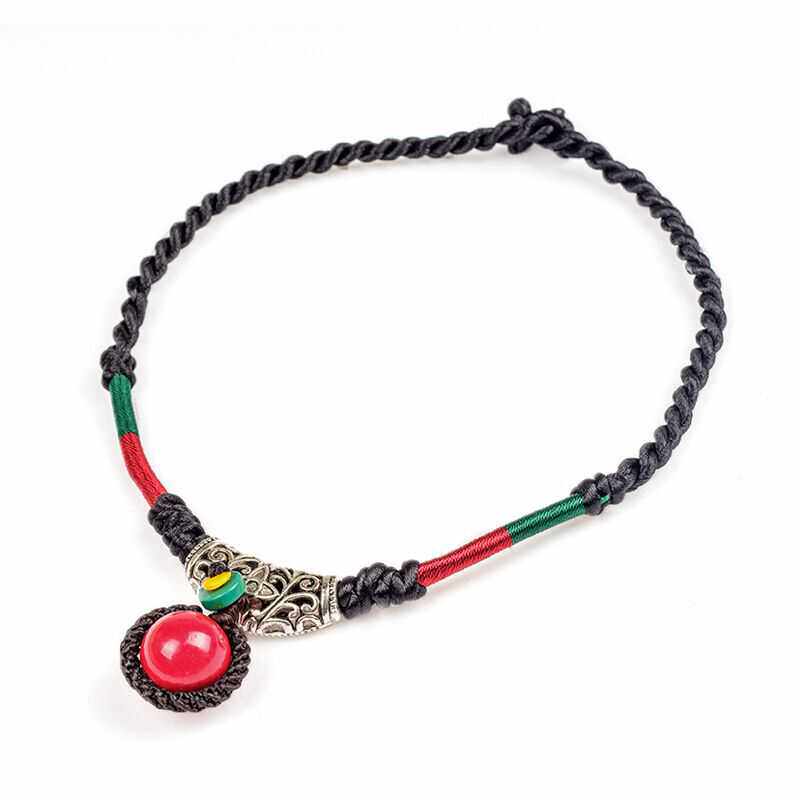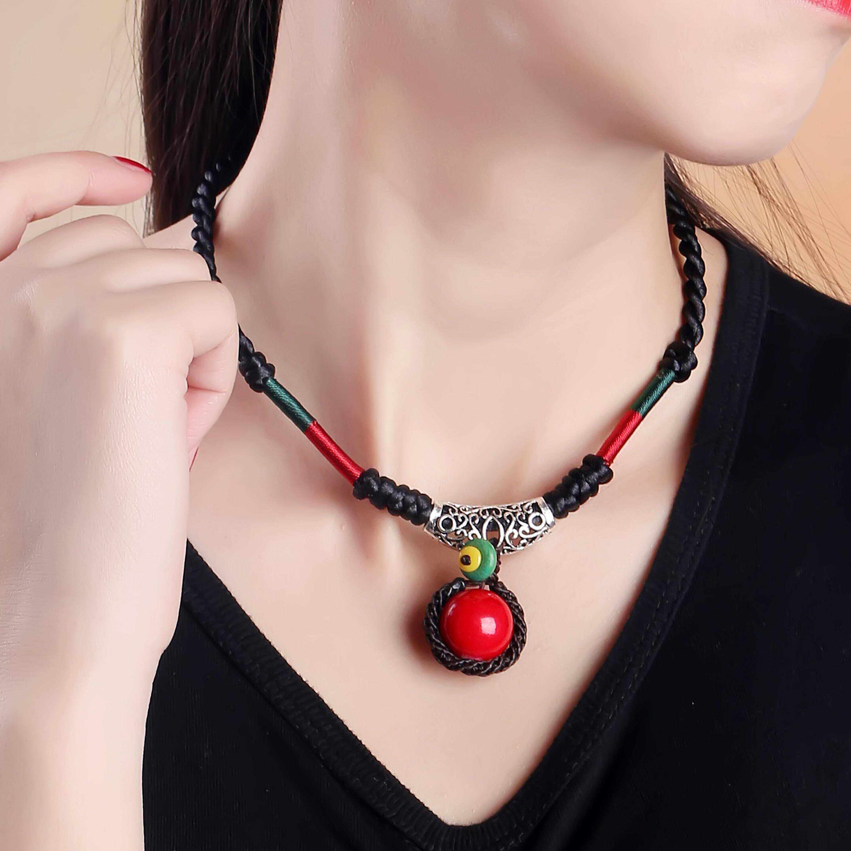 民族风短款手工编织红色百搭项链女复古配饰品脖子简约文艺锁骨链