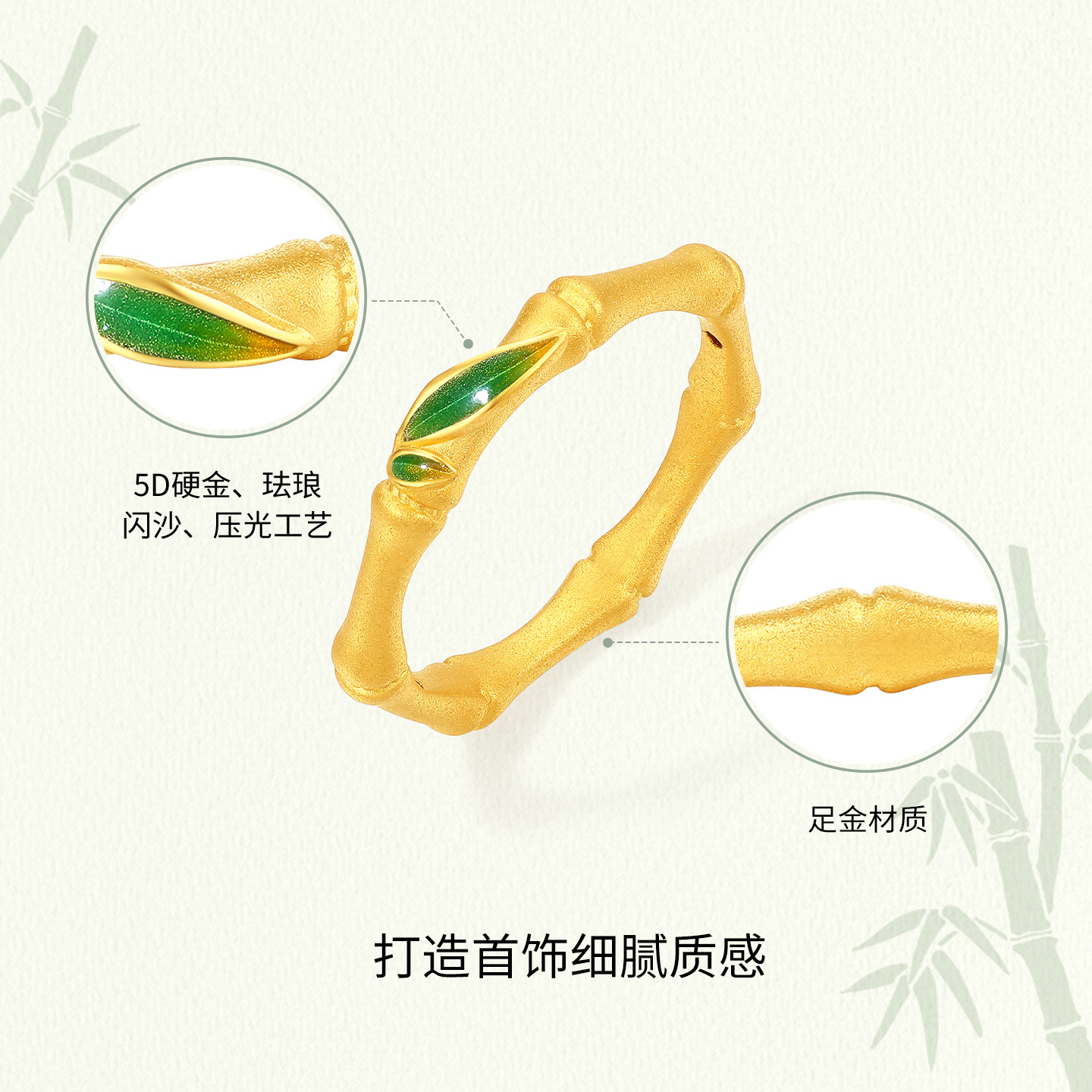 周六福黄金5d硬金竹节戒指女款定价竹影金枝戒指送礼物节节高升