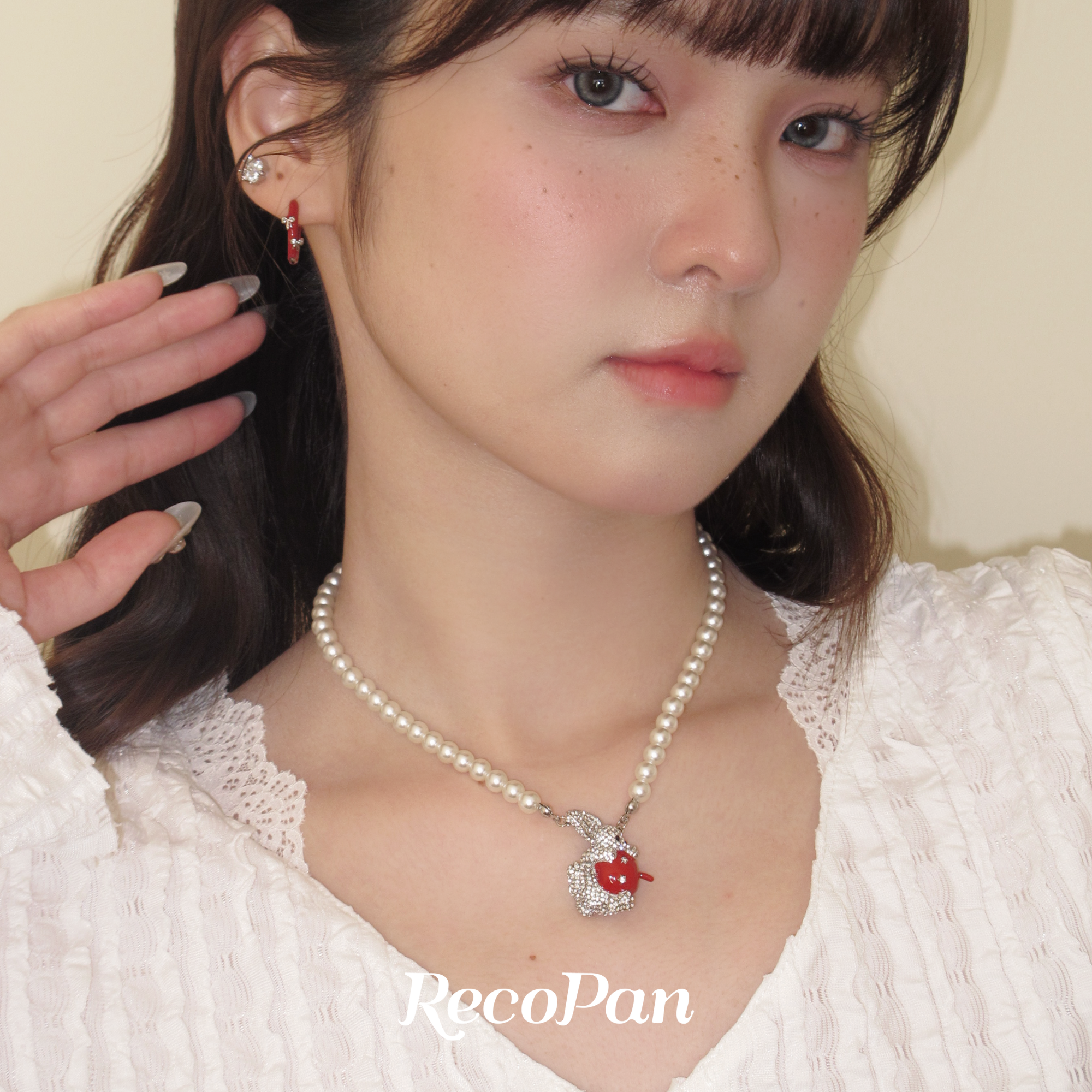 RecoPan圣诞夜的兔子/新品原创礼物设计感好运苹果满钻珍珠项链