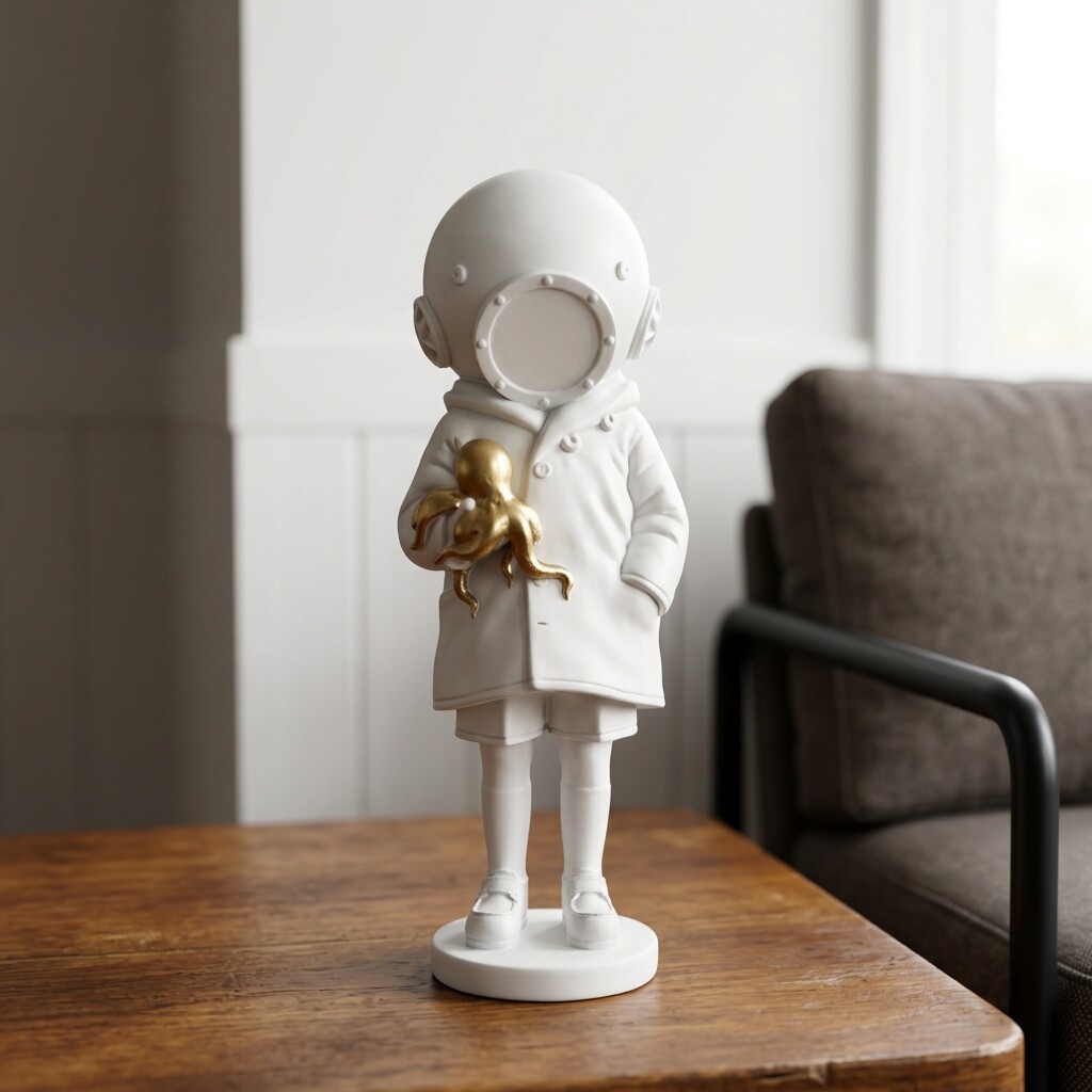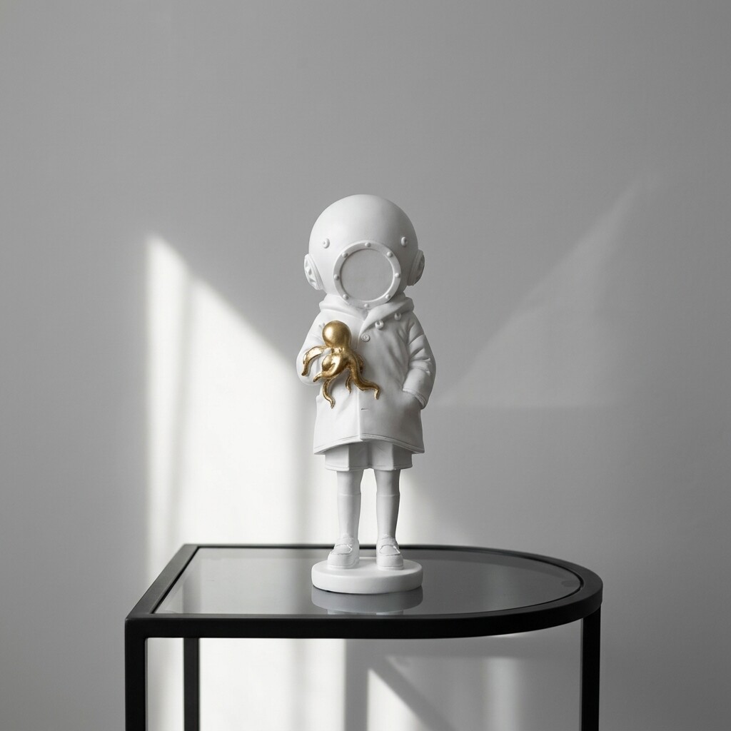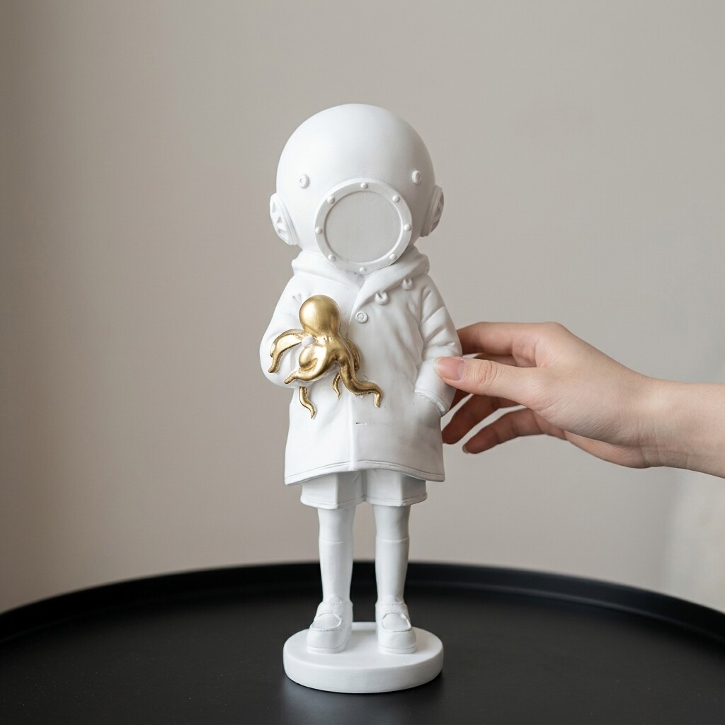 创意潜水员造型装饰摆件白色树脂家居桌面工艺品现代简约