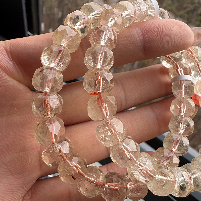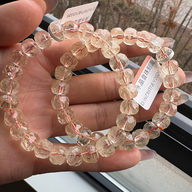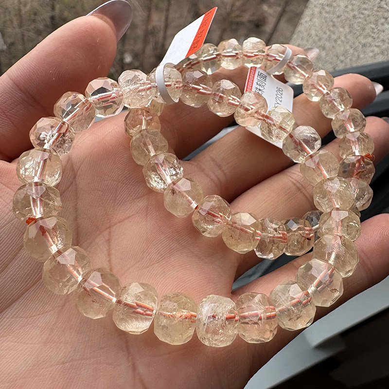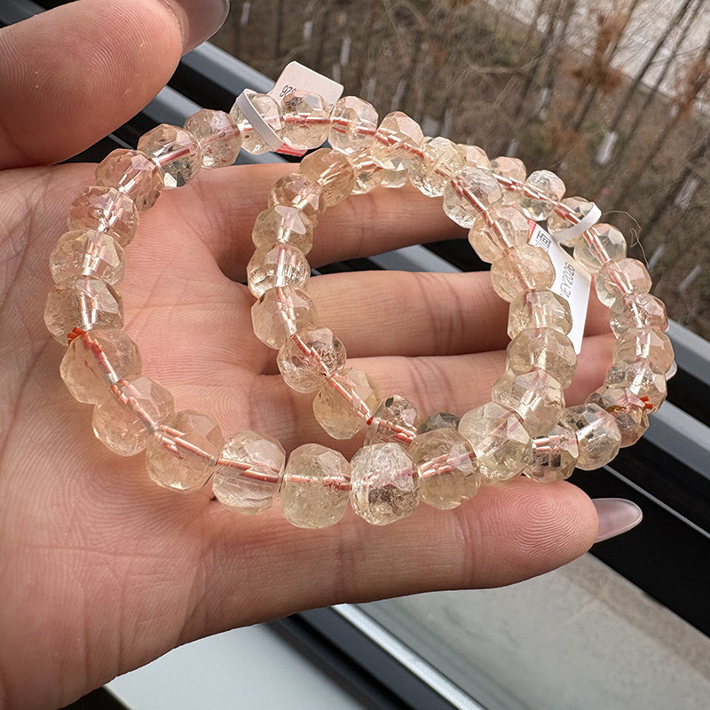 天然黄水晶切面手链 女款单圈黄水晶刻面手串简单饰品礼物带棉裂