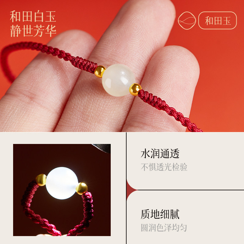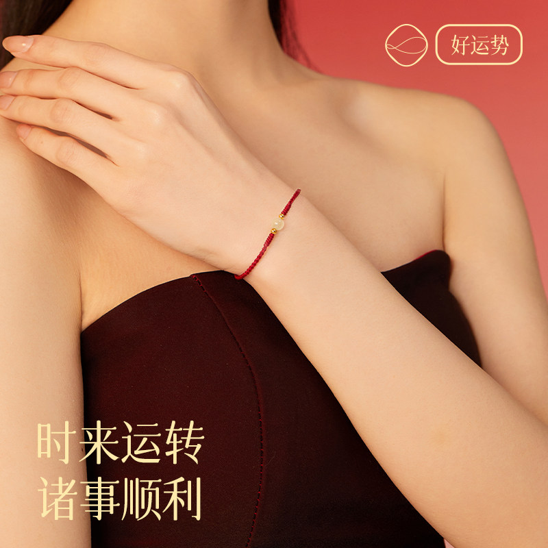 本命年和田玉转运珠红绳手链女生天然红色手绳男情人节礼物送女友