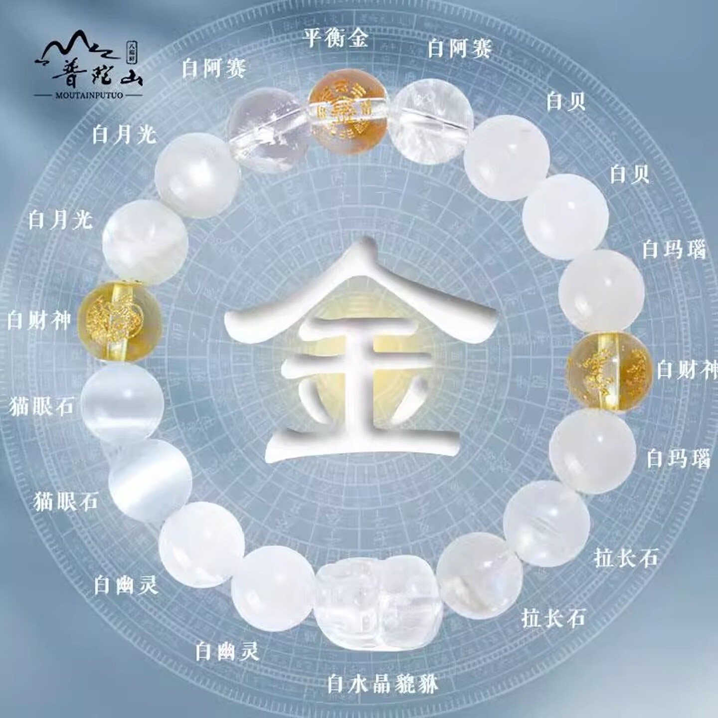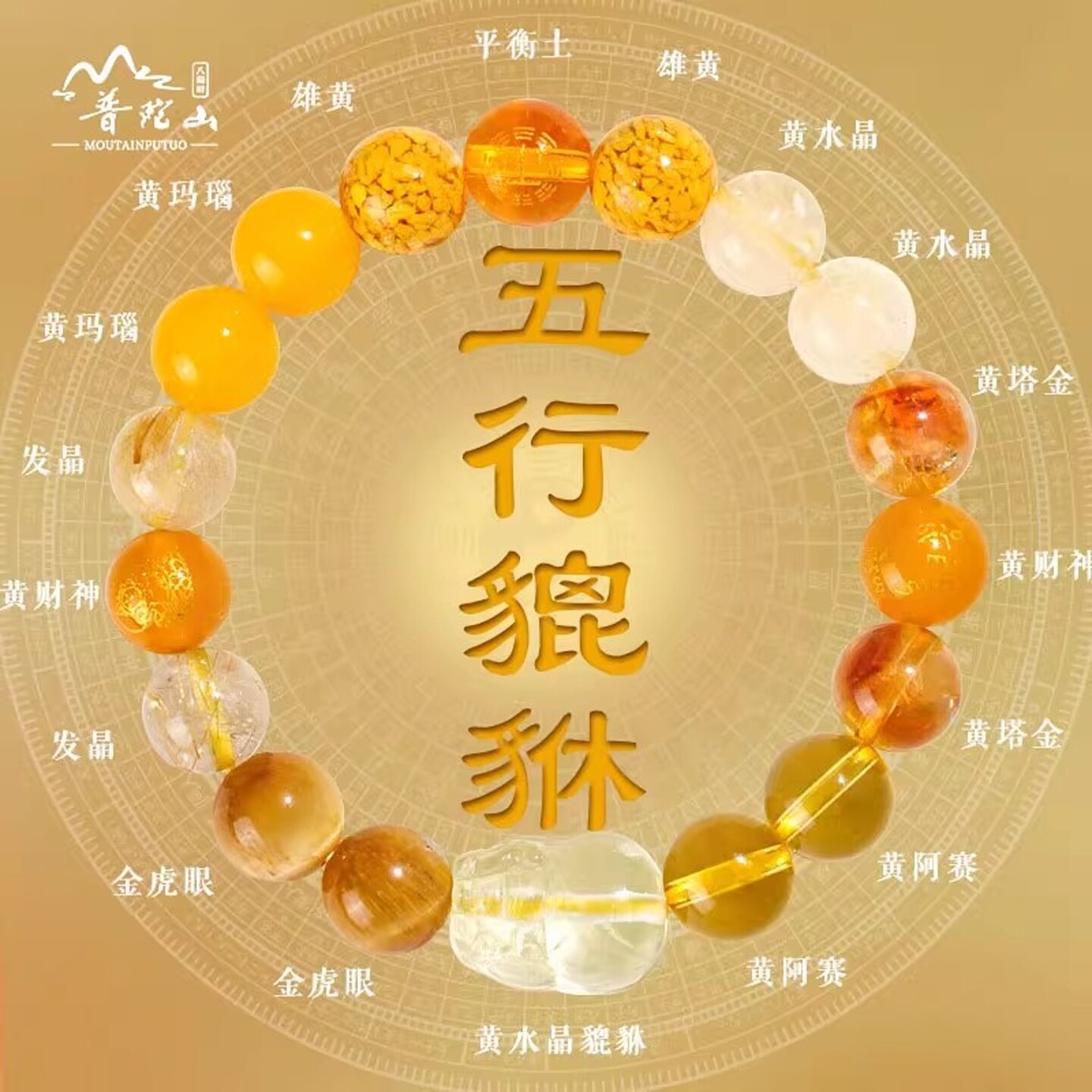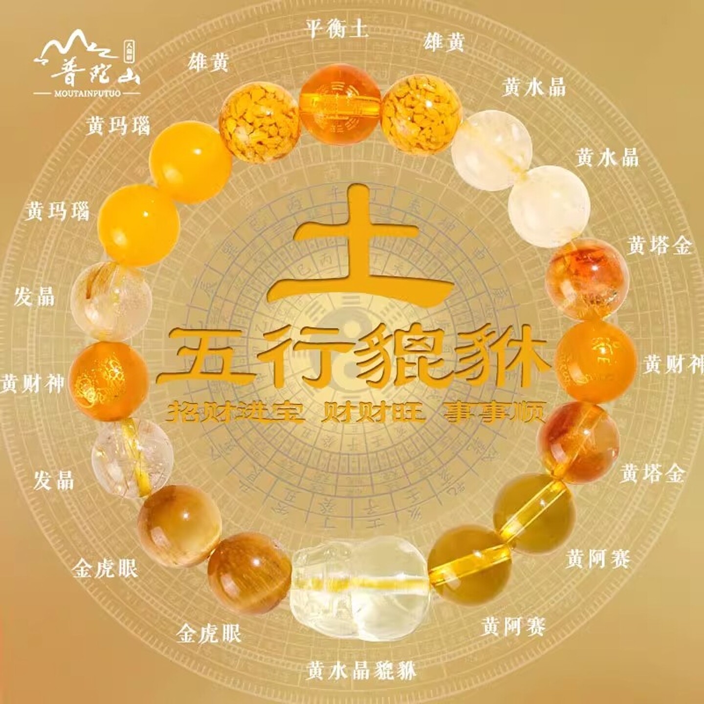 普陀山五行手链属土补土缺土喜用土黄色天然水晶手串护身符男饰品