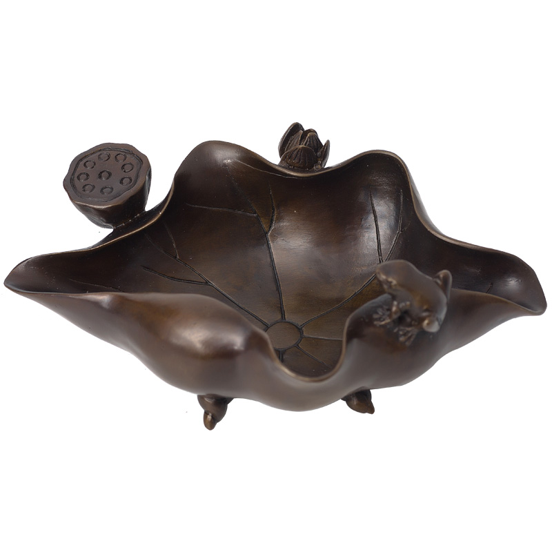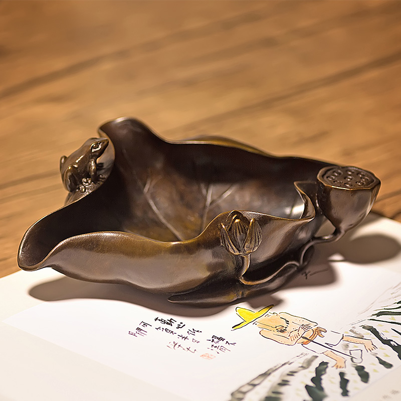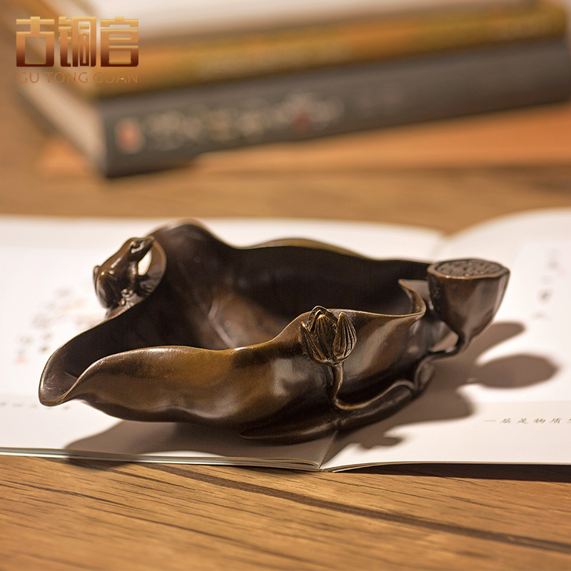铜烟灰缸家用 客厅复古仿古创意礼品摆件 个性荷花潮流工艺品摆设