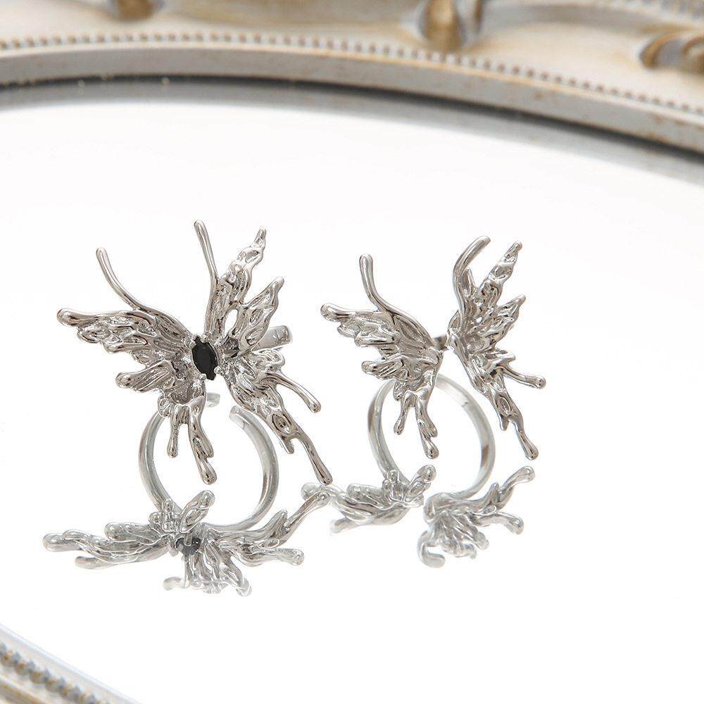 Butterfly open ring lady食指戒小众高级感液态蝴蝶开 口戒指女