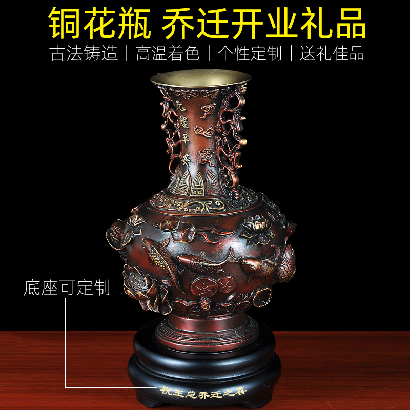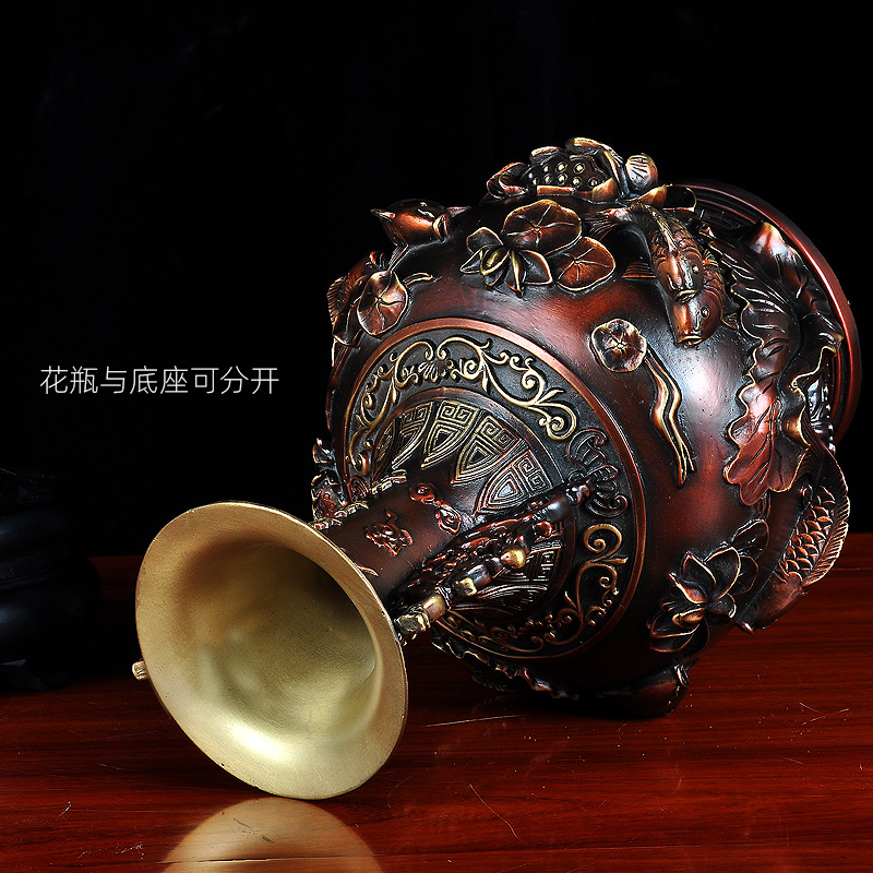 纯铜轻奢花瓶摆件大号家居客厅插花创意摆设家用玄关电视柜装饰品
