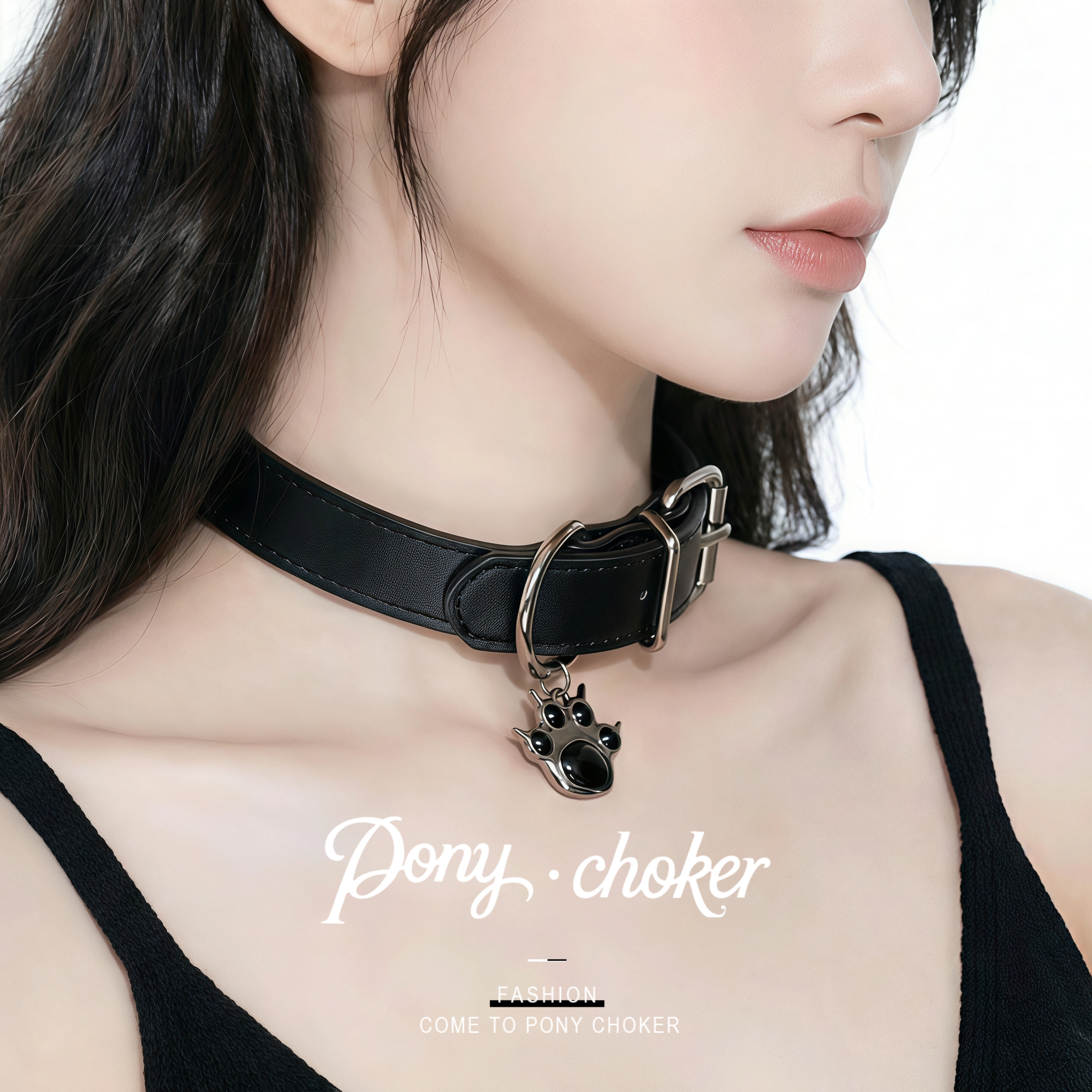 黑色皮质项圈小铃铛颈链短款项链小众颈带秋冬配饰女
