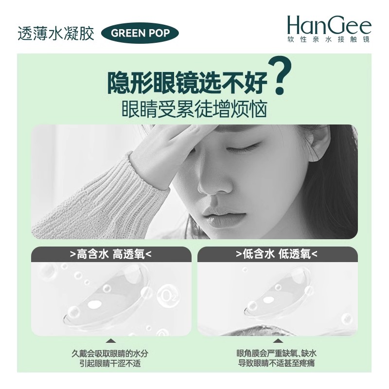 【自营】HanGee韩姬儿月抛6片装近视隐形眼镜透明小直径官网正品