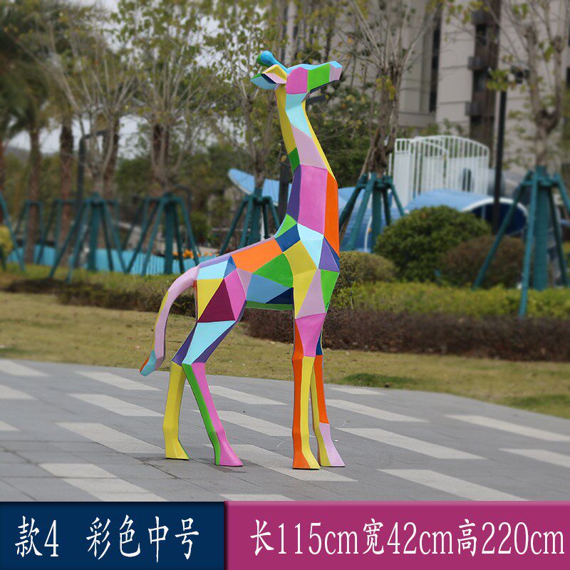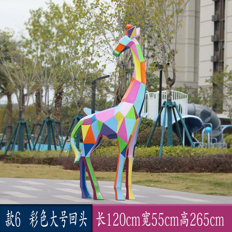 玻璃钢几何切面彩绘长p颈鹿动物雕塑小区公园林广商场草坪装饰摆