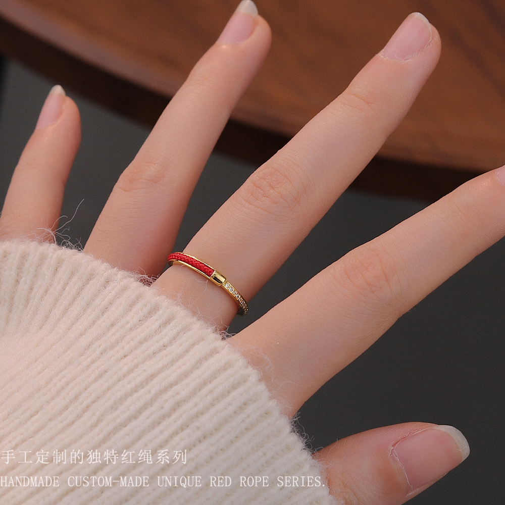 本命年蛇年红绳开口戒指女轻奢高级感小众设计国风食指戒2025新款