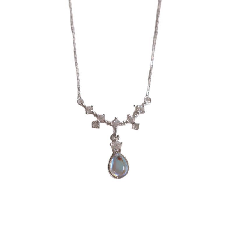 《海神之泪》925纯银 精致复古轻奢高级感月光石水滴项链锁骨链女