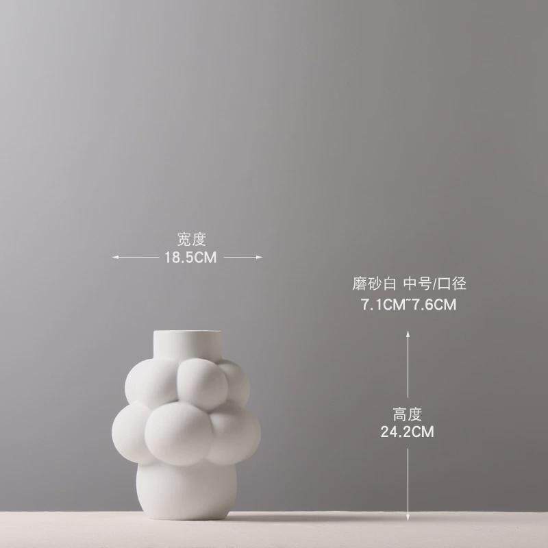 北欧异形花器陶瓷摆件鼓包磨砂白色售楼部样板房插花花瓶创意装饰