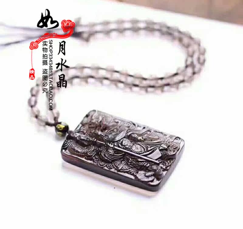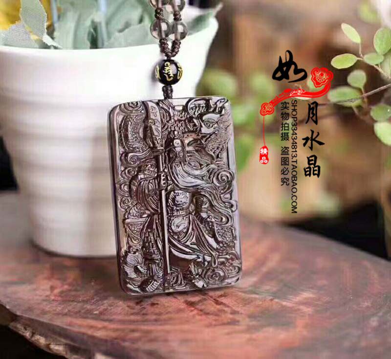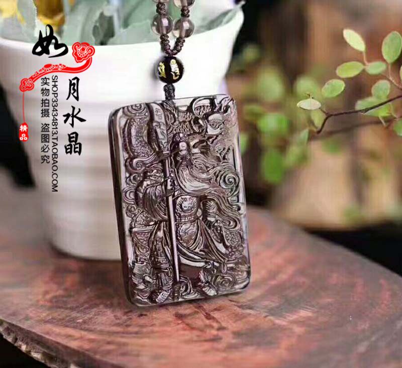 天然冰种黑曜石降龙关公大刀关羽武财神关云长吊坠 471