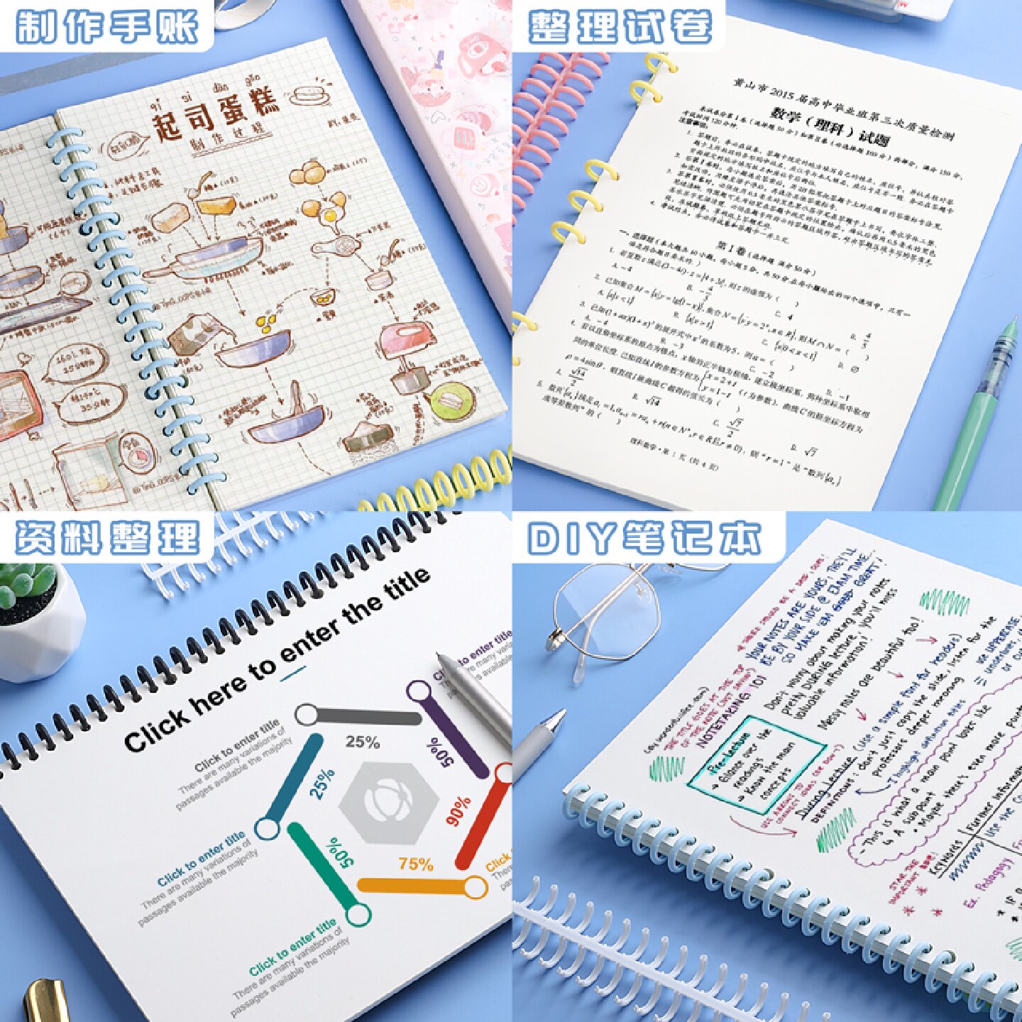 diy活页封面磨砂透明自制打孔活页夹环pvc线圈条b5活页纸扣环装订