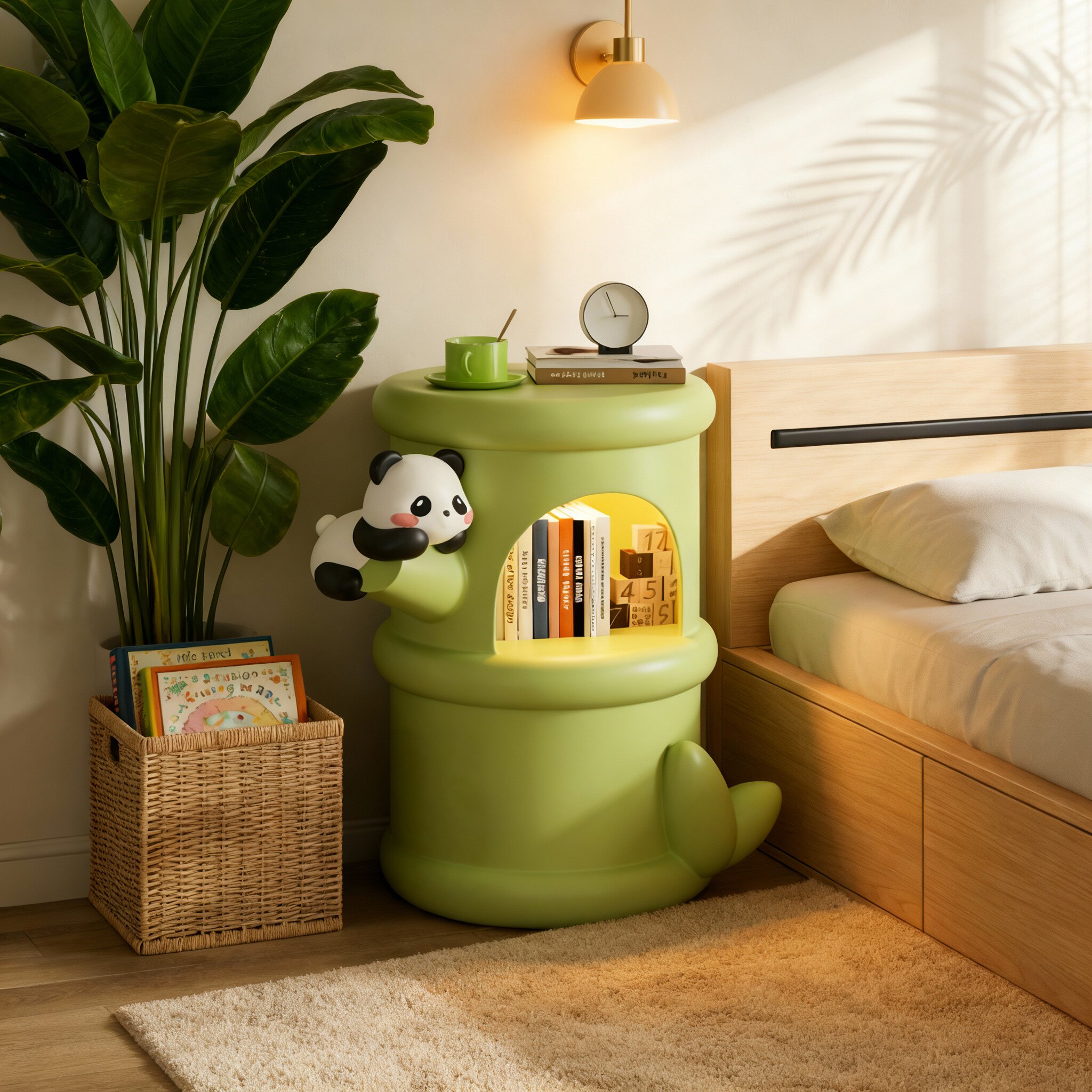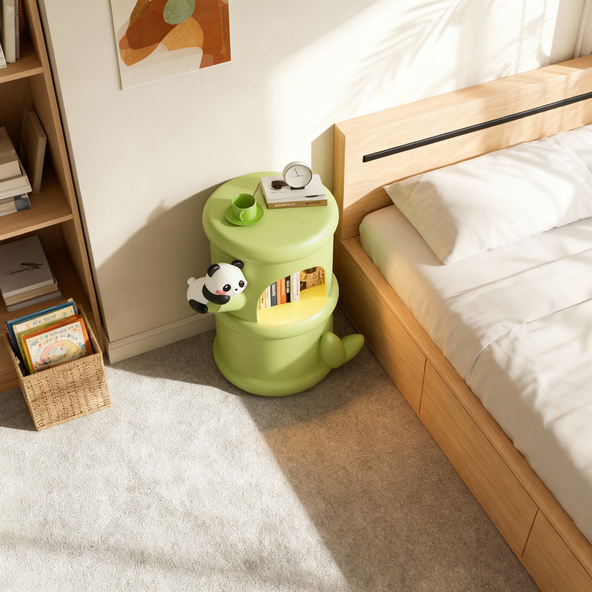 创意熊猫造型储物柜儿童房绿色多功能收纳置物架卡通书架