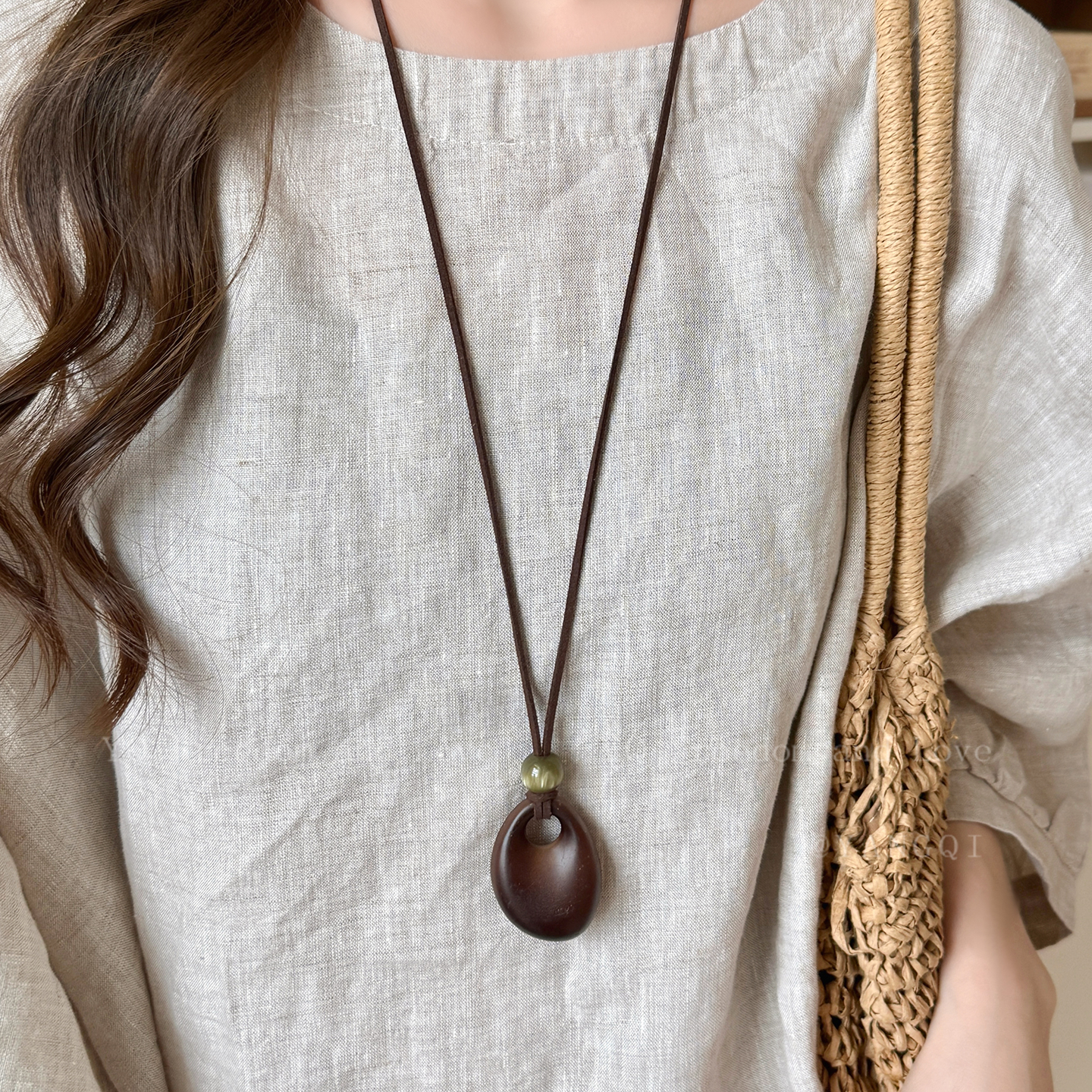 秋冬不规则圆环吊坠项链女民族风高级感长款毛衣链搭衣服挂脖配饰