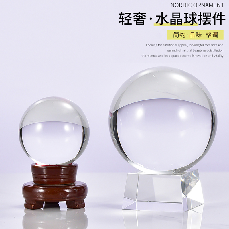 透明白水晶球摆件玻璃球办公桌客厅玄关隔断家居装饰品桌面摆放