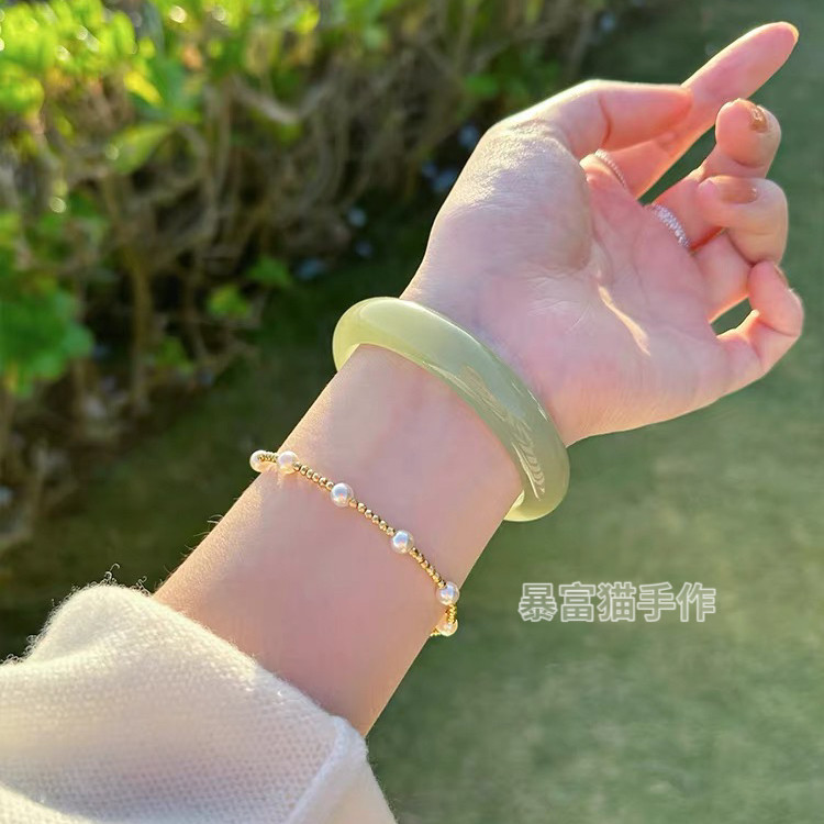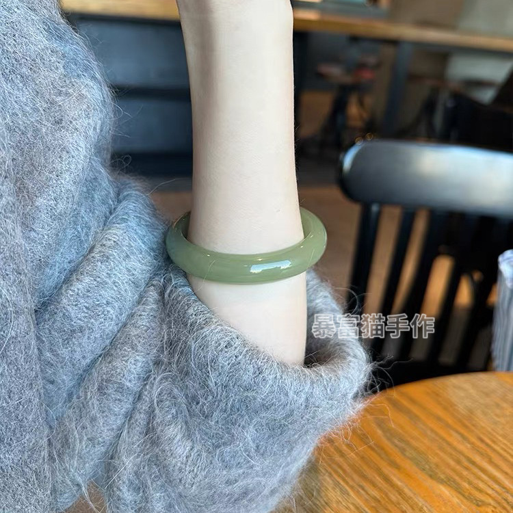 纯天然东陵玉手镯女款浅晴水玉镯绿色油青和田玉翡翠色送礼物正品