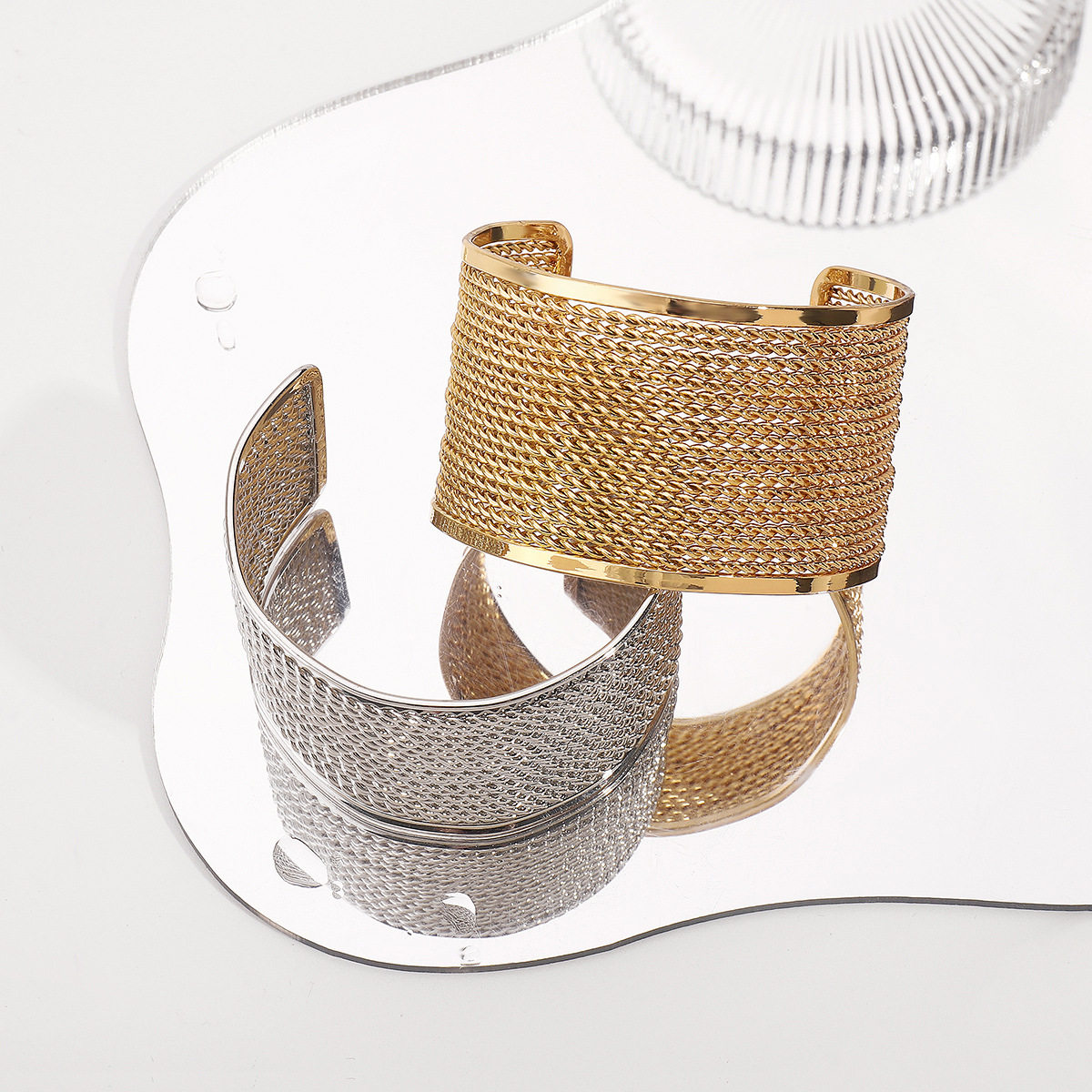 欧美跨境开口线艺宽链条绕线高端手镯 小众设计个性金属重工手环