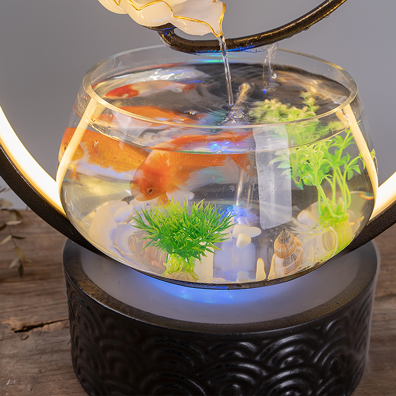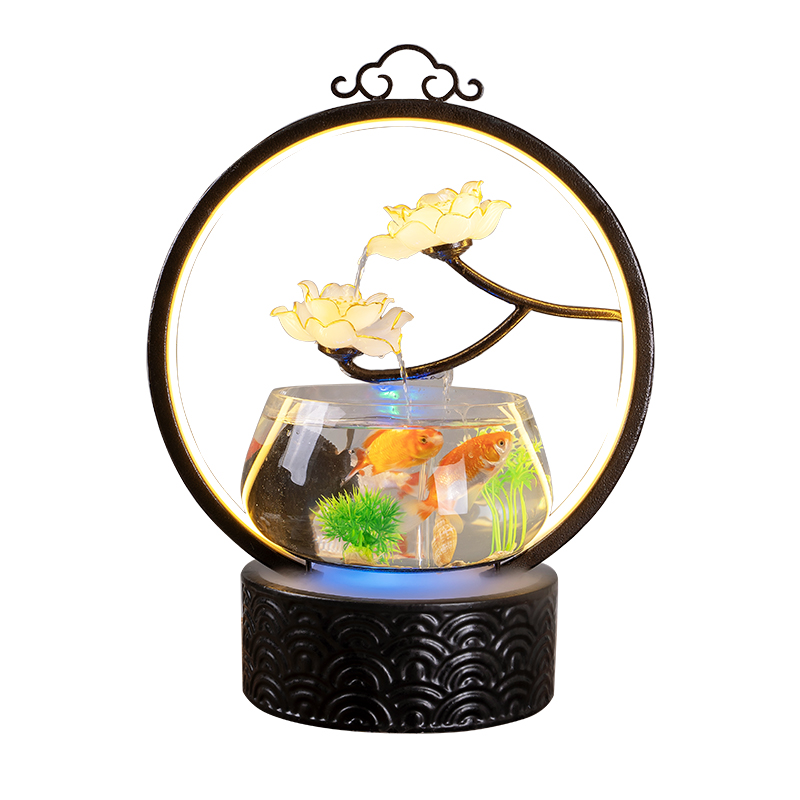 速发创意流水景观电视柜摆件雾化加新器迁厅小型鱼缸乔客湿居礼品