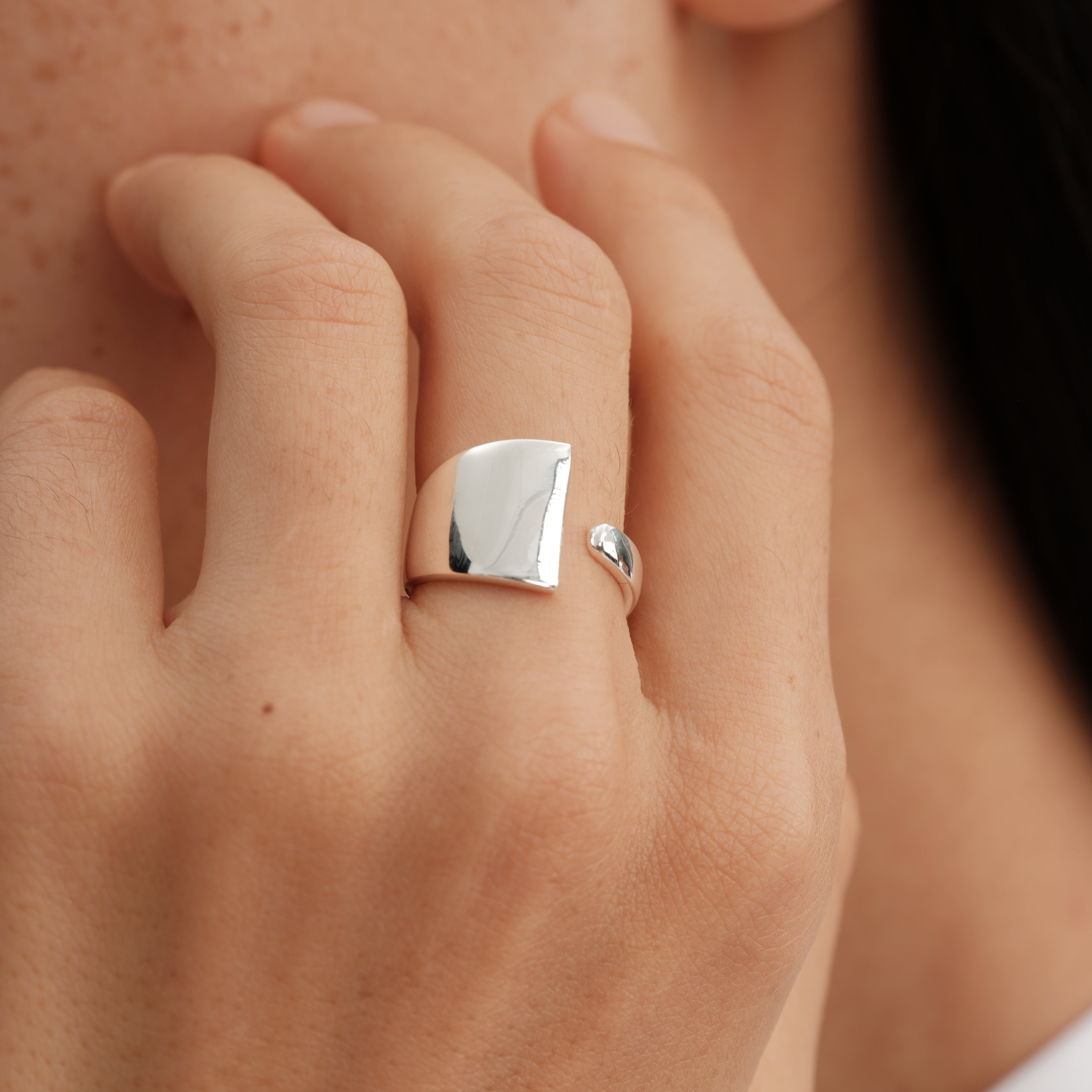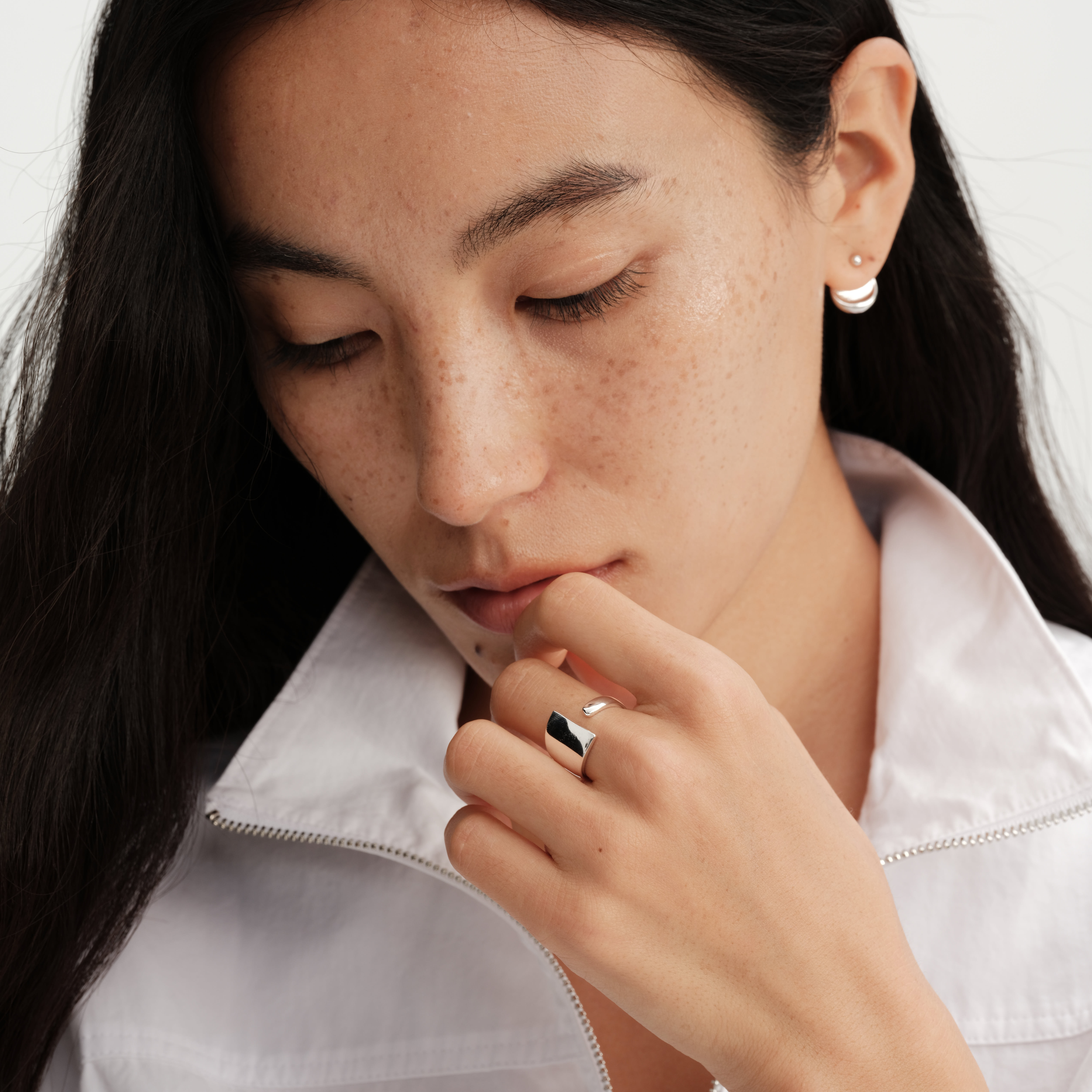 【CnHnOn脂肪商店】s925纯银简约建筑感渐变厚银高级质感百搭戒指