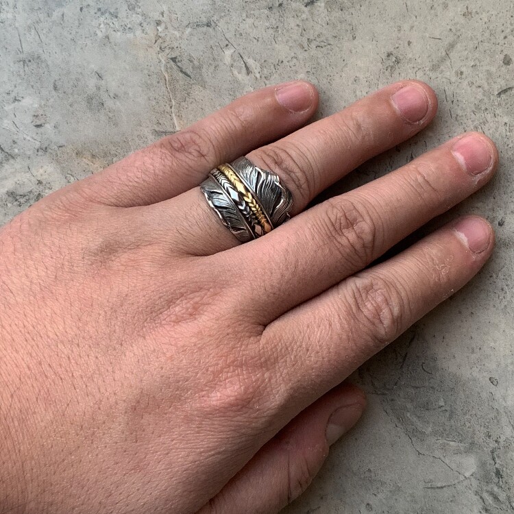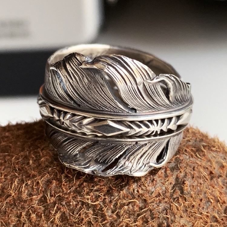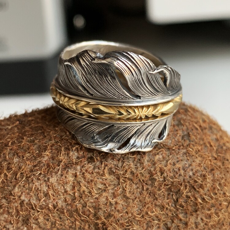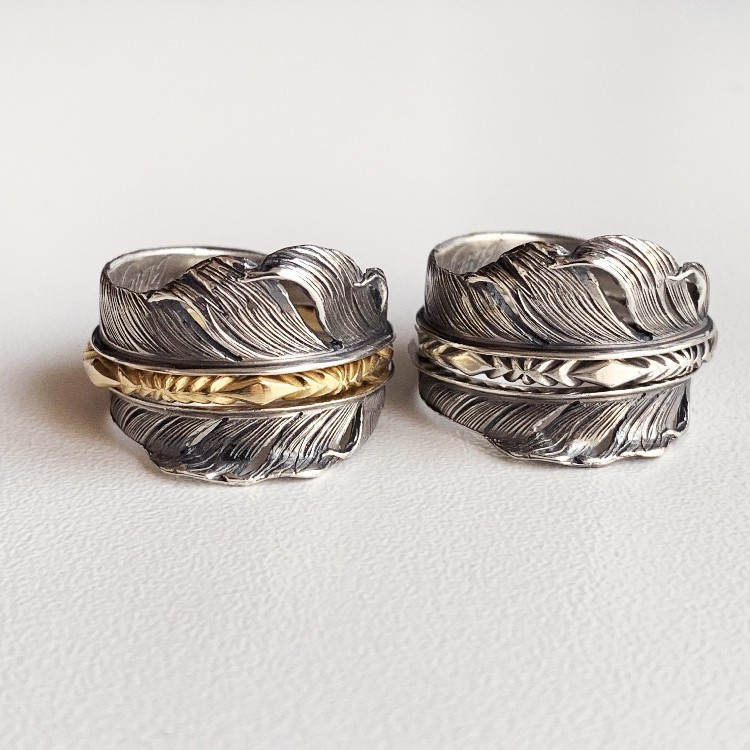 铁头的店 蓝色地平线HBhorizon blue分体款羽毛戒指 纯银情侣指环