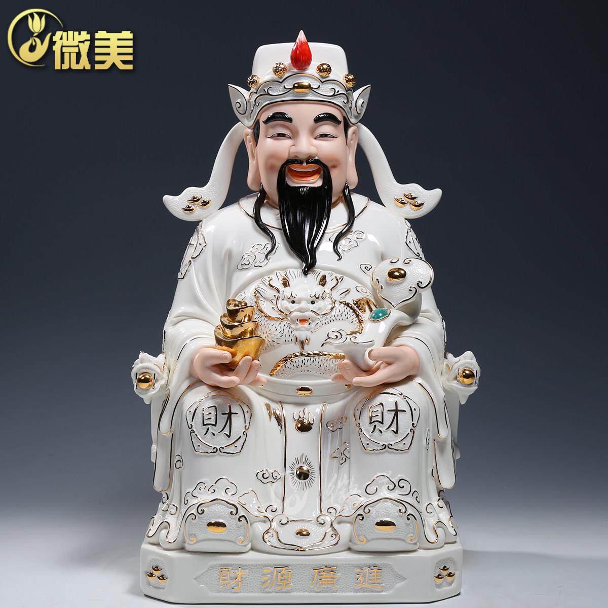 微美 陶瓷10至18寸坐龙椅财神爷佛像家用供奉红色佛像招财摆件