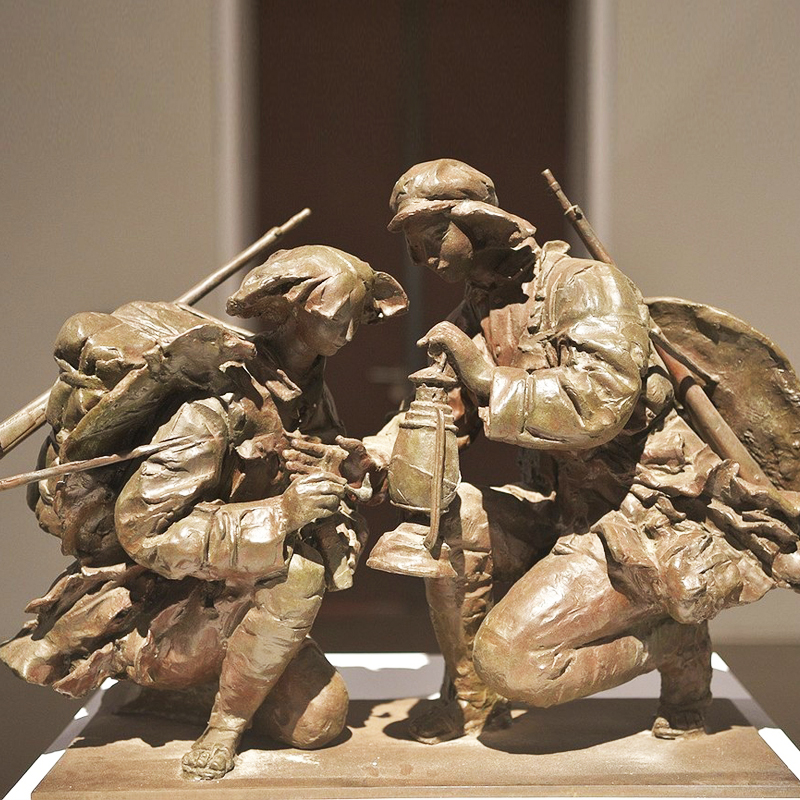 红色文化主题雕塑玻璃钢艰苦岁月人物摆件博物馆纪念铜雕工艺品