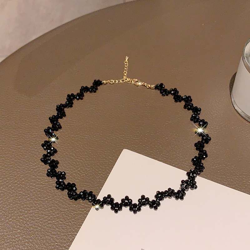 韩国东大门新款小众黑色水晶颈链锁骨链女2025年新款法式时尚项链