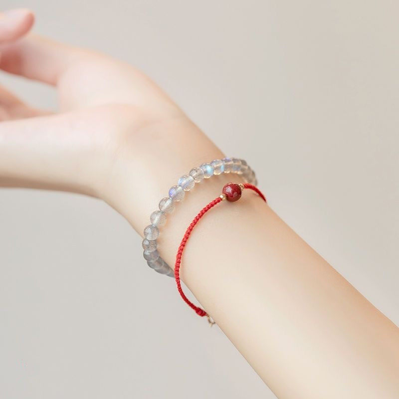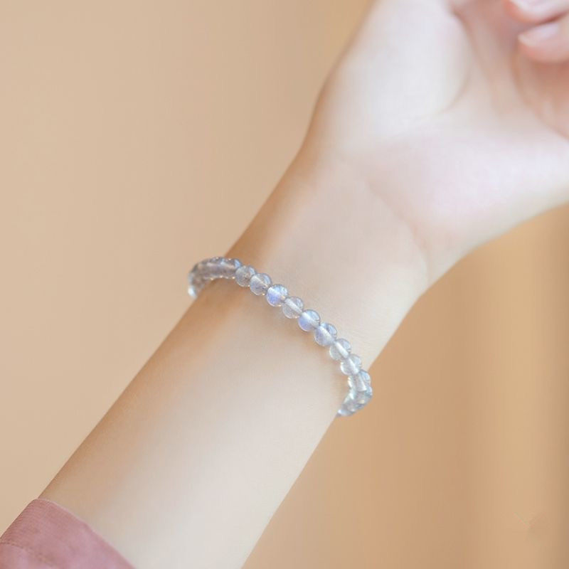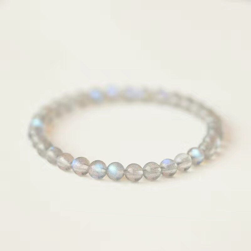 天然灰色月光石手链拉长石爱情守护石转运手串水晶细款简约女礼物
