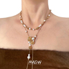 MASW麻秀设计怀旧轻奢双层珍珠项链小众复古玫瑰毛衣链叠戴2024新