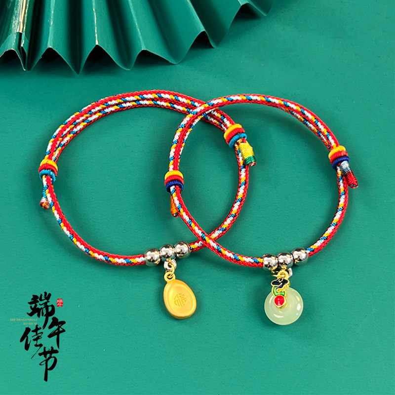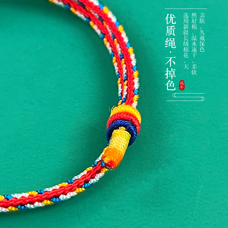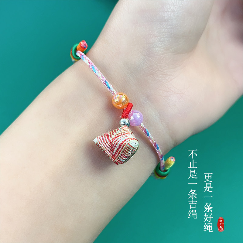 端午节五彩绳手工diy编织手链男女好运红绳小粽子五彩线儿童手绳